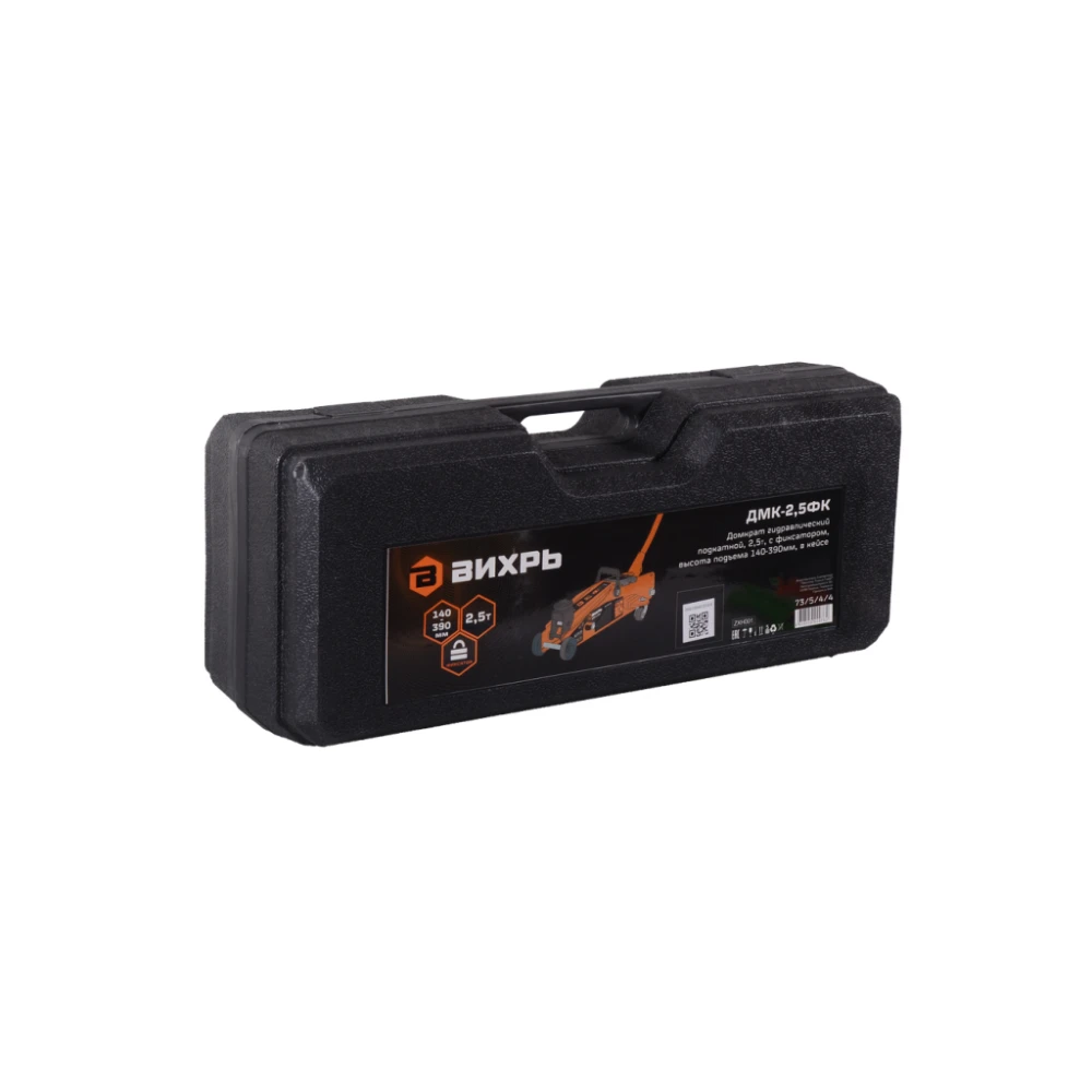 Технические характеристики Домкрат гидравлический подкатной ДМК-2,5ФК (2,5 т, 140-390 мм, с фиксатором, в кейсе) Вихрь