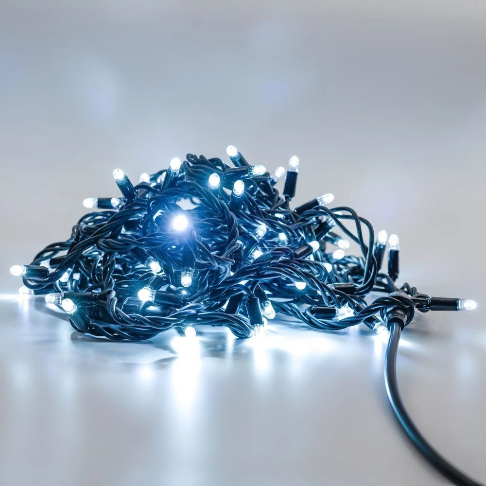 Гирлянда Нить, 220 В, 10/1 м, чёрный провод, каучук (резина), белый, без мерцания