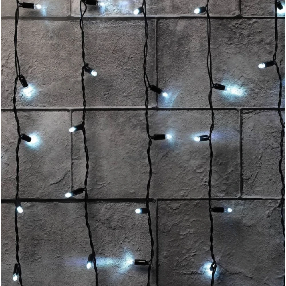 Гирлянда Занавес 220 В, 2x9 м, чёрный провод, каучук (резина), белый, с мерцанием