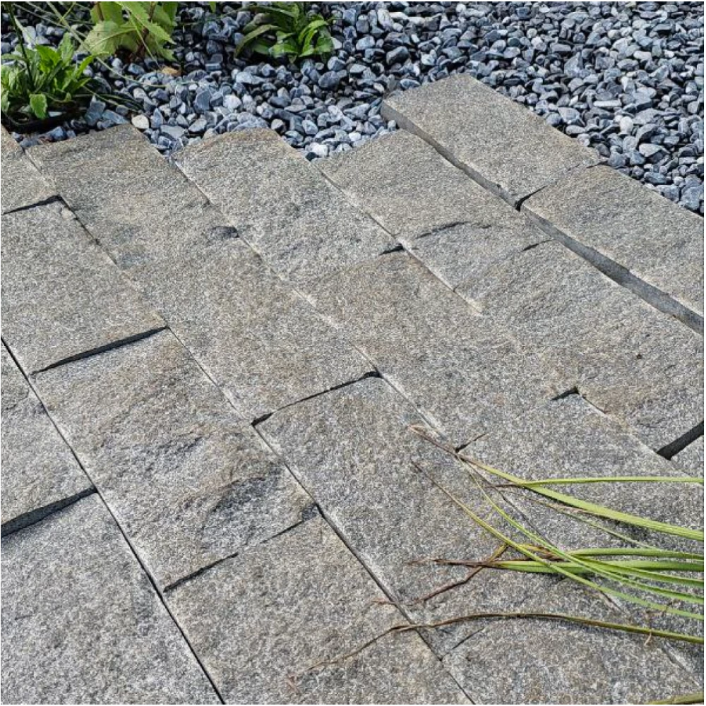 Брусчатка пилено-колотая (пиленые 5 граней, верх колотый) 100х200х50 мм Габбро