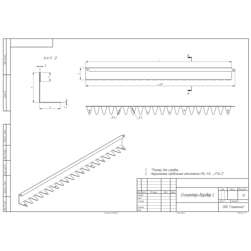 Технические характеристики Бордюр Сплиттер L из оцинкованной стали, длина 1,2 м, высота 80 мм, толщина 3 мм