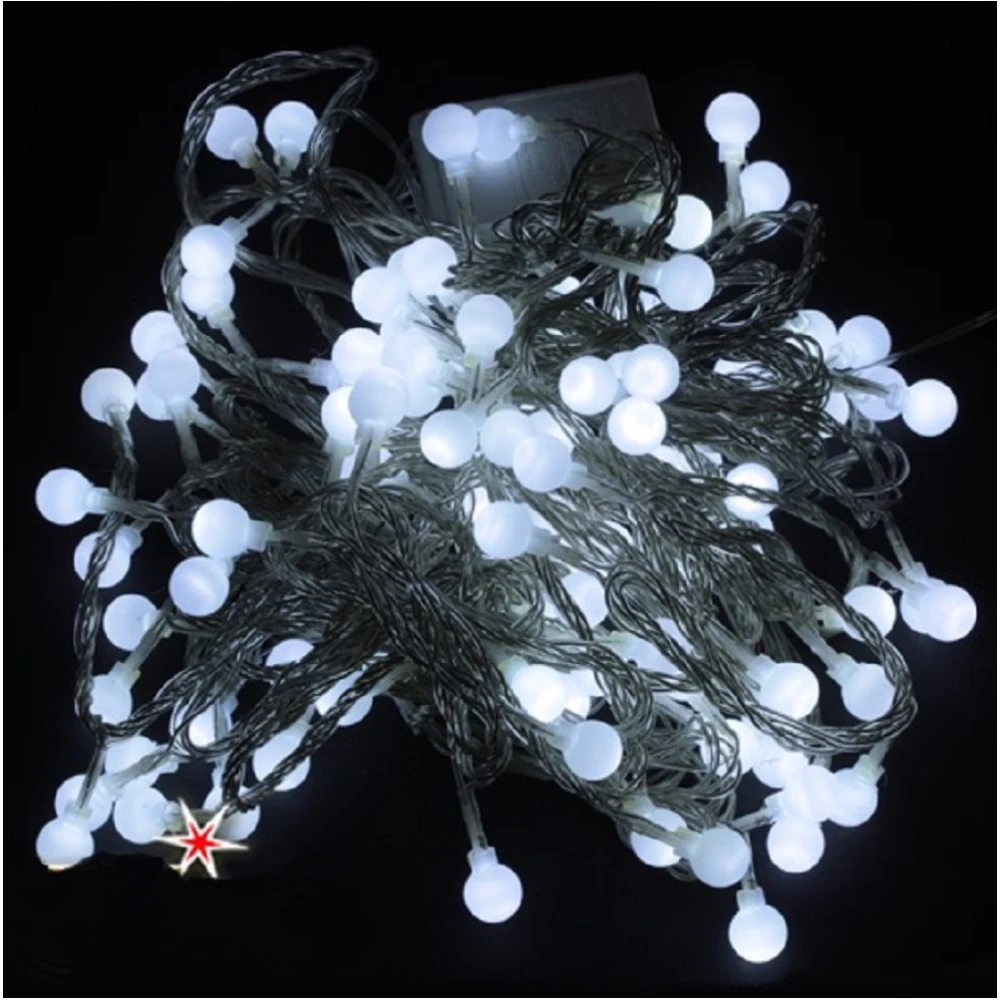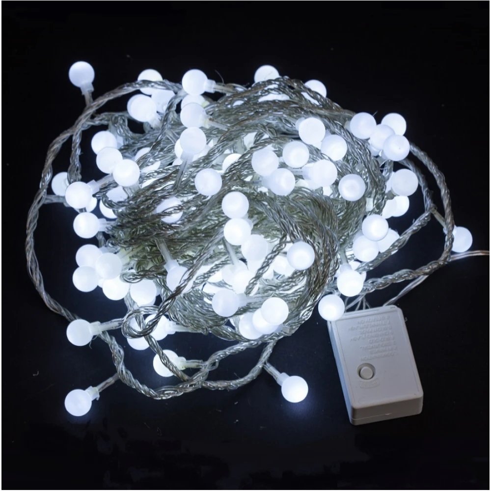 Светодиоды шарики 140 ламп с контроллером, 8 режимов., холодный белый