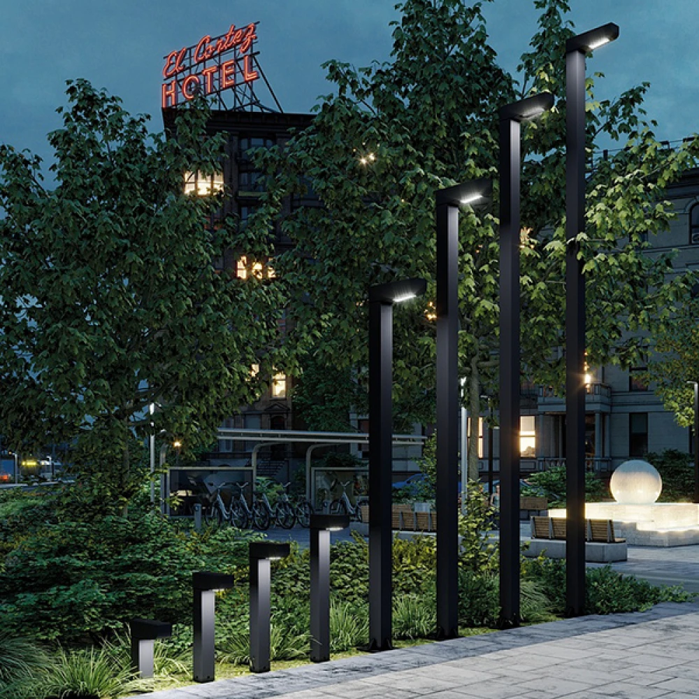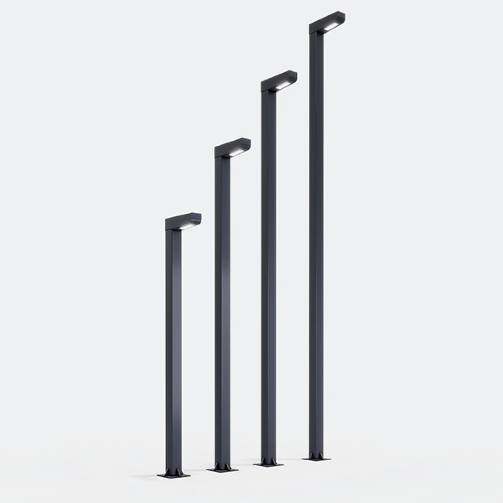 Площадь освещенности можно регулировать, изменяя высоту столба в пределах от 1 м до 6 м - чем выше расположен светильник, тем больше освещаемая площадь. Низкие модели позволяют освещать площадки в условиях плотной застройки и густой растительности, а высокие – увеличить площадь освещения и уменьшить число инженерных конструкций на объекте.