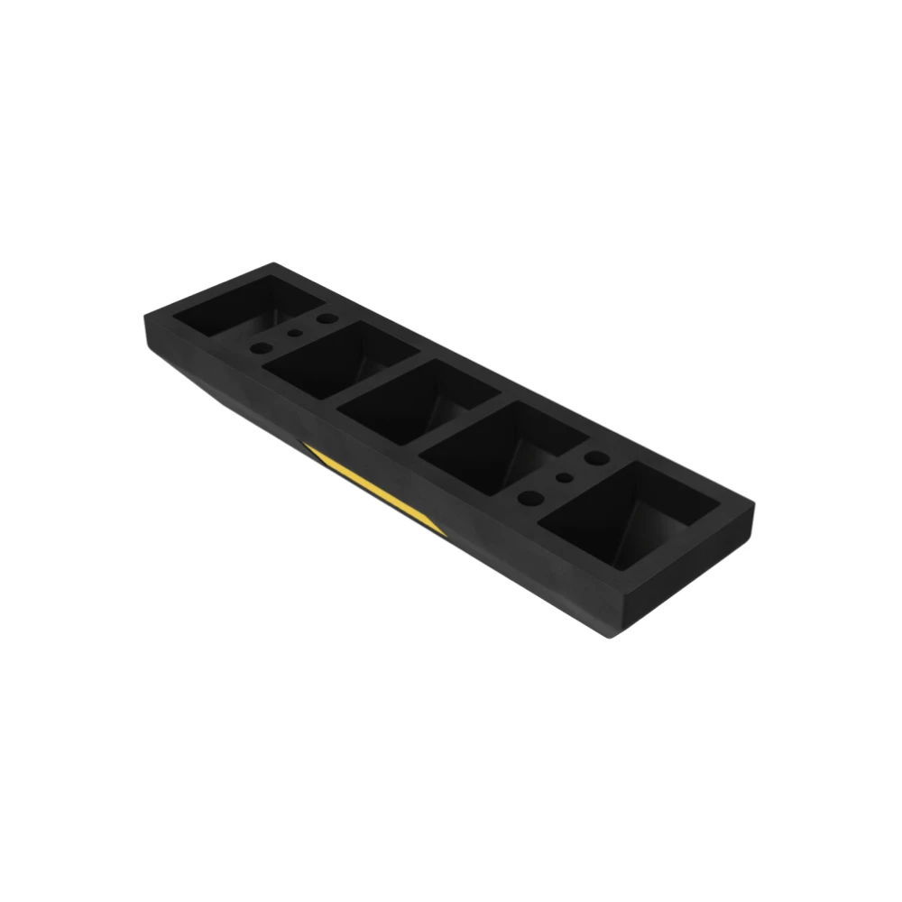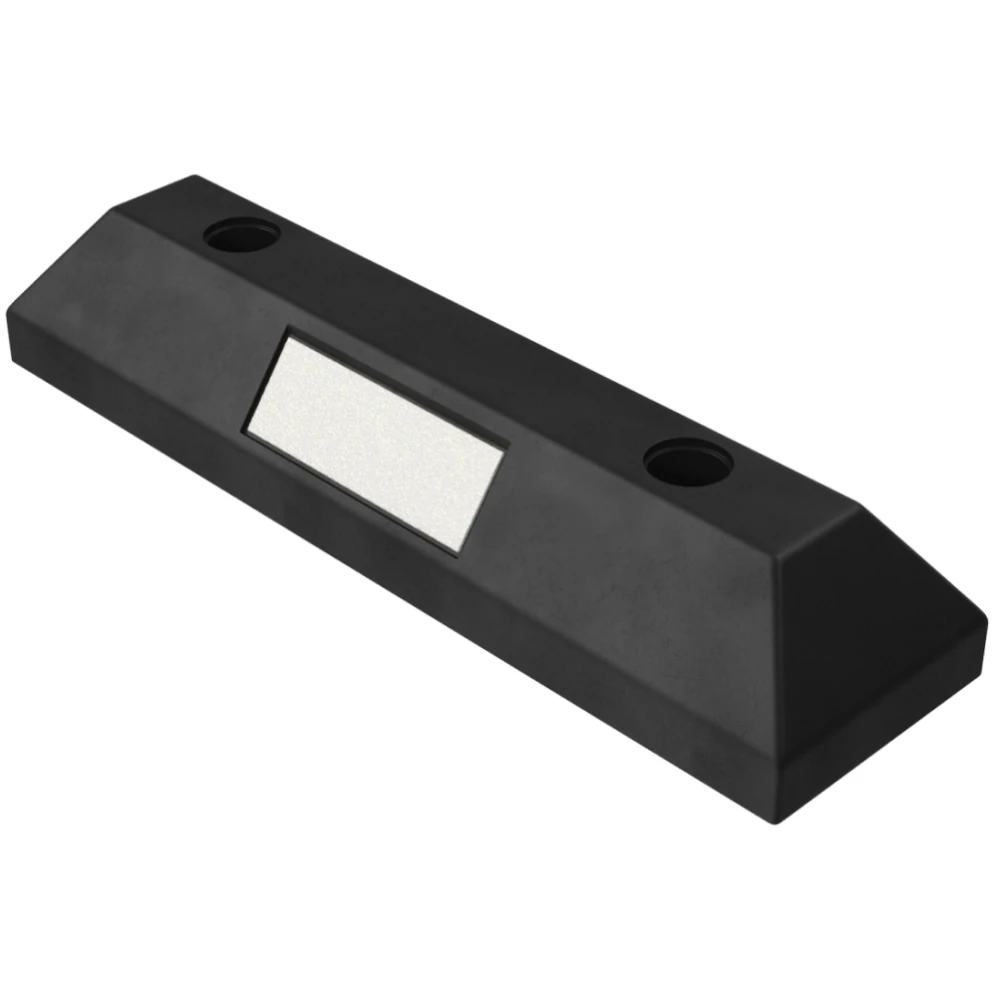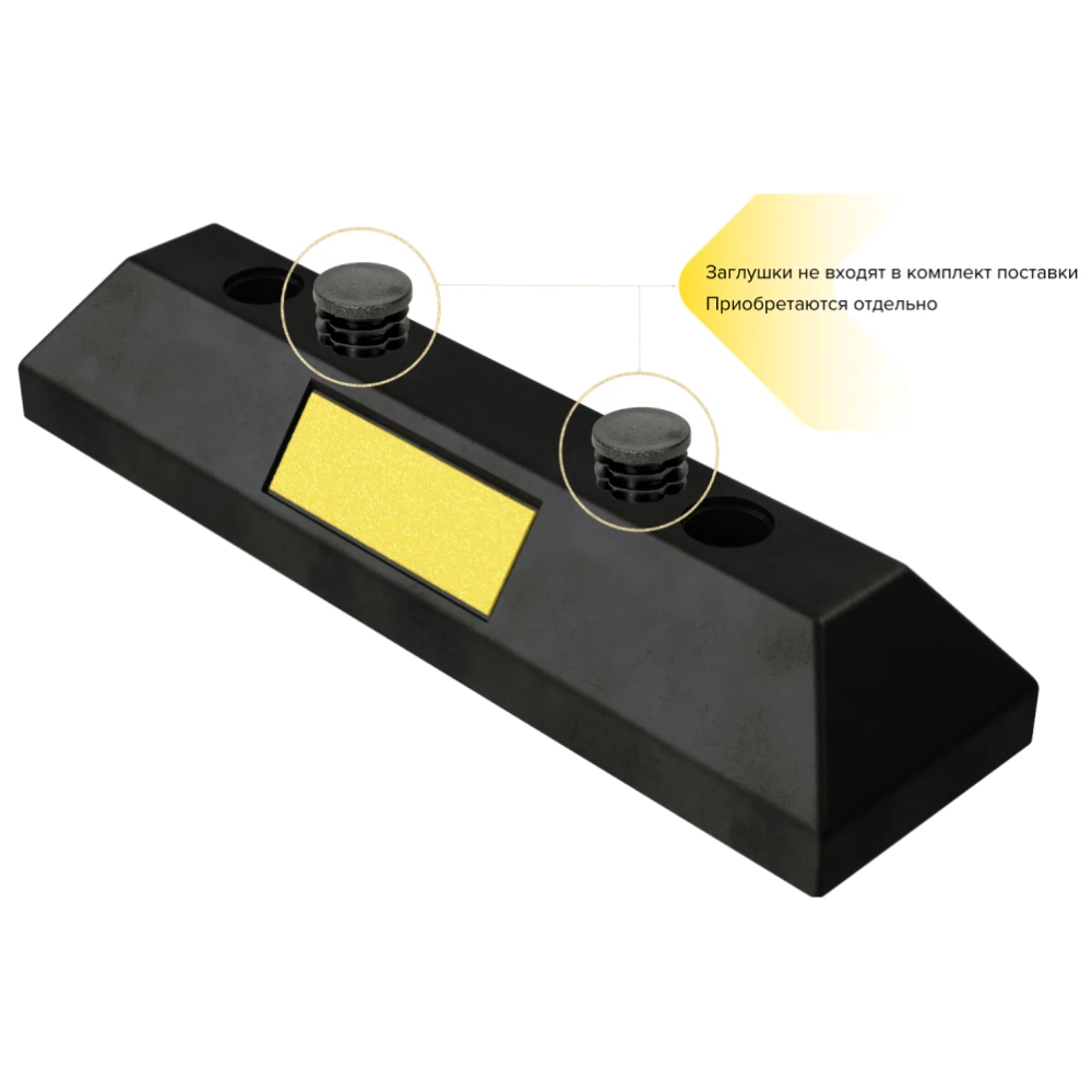 Формовое изделие из ударопрочной резины черного цвета. С каждой стороны изделие оснащено светоотражателем желтого цвета для улучшения видимости в условиях недостаточной освещенности.