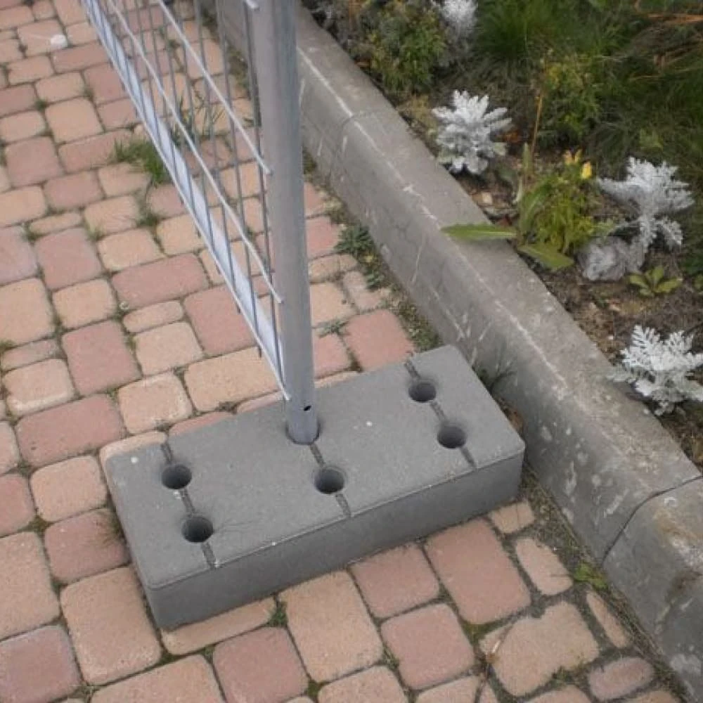 Основание бетонное для мобильных ограждений - это платформа для установки секций временного забора. Башмак имеет в своём составе 6 технологических отверстий, благодаря чему можно легко менять направление линии забора под разными углами. Прочное и крепкое основание из армированного бетона высокого качества имеет большой ресурс работы, что позволяет использовать его многократно на разных объектах в течение длительного времени.