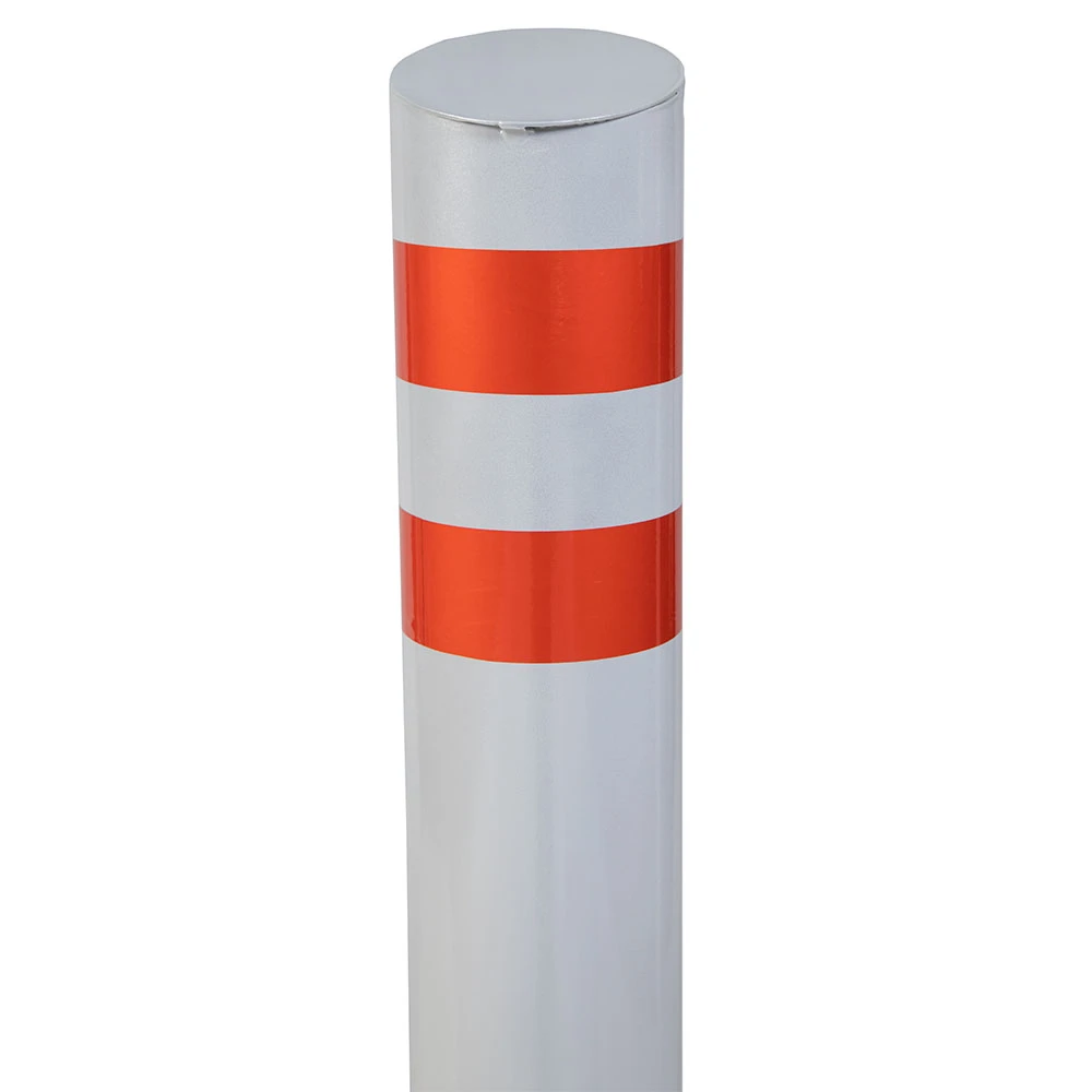 Столбик парковочный изготовлен из стальной трубы, изделие оснащено двумя светоотражающими наклейками.