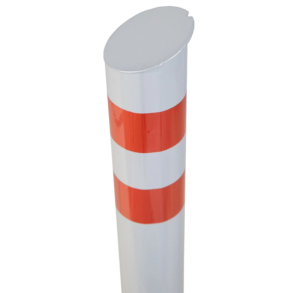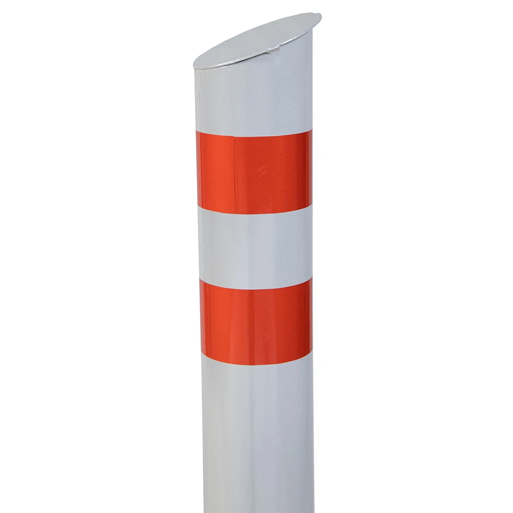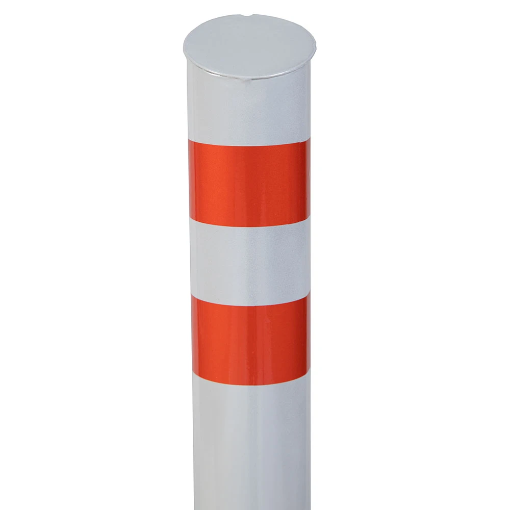 Столбик парковочный изготовлен из стальной трубы, изделие оснащено двумя светоотражающими наклейками.