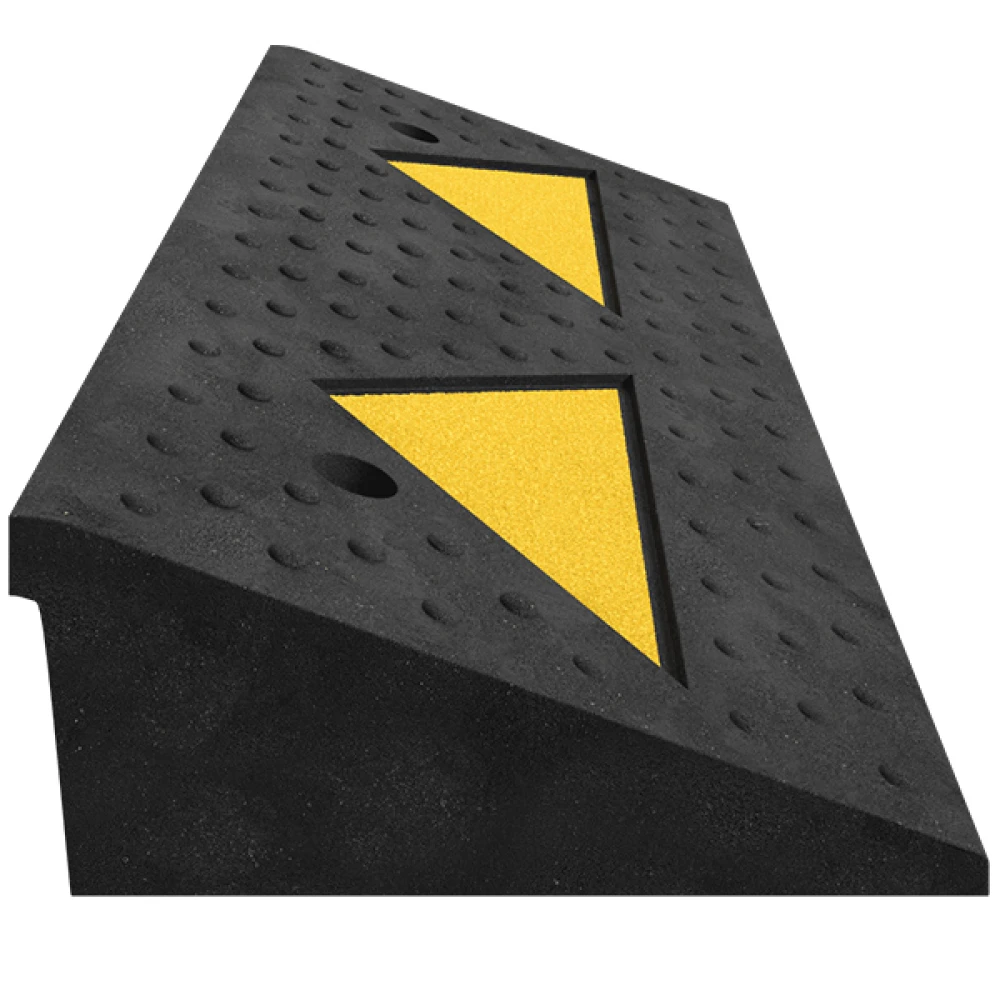 Формовое изделие из прочной полимерно-песчаной смеси черного цвета. На верхней части изделия имеется рифление для предотвращения проскальзывания колес.