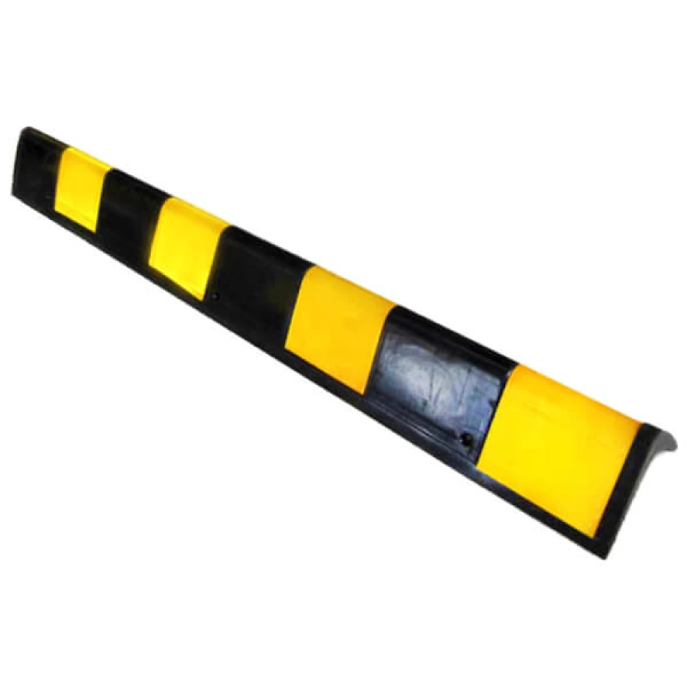 Прямой демпфер ДУ-12 изготовлен из долговечной высокопрочной резины черного цвета. В углублениях расположены светоотражающие наклейки, которые хорошо видны с расстояния 15-20 метров. Параметры отбойника: 900 мм х 100 мм х 12 мм. Количество отверстий для крепления — 6.