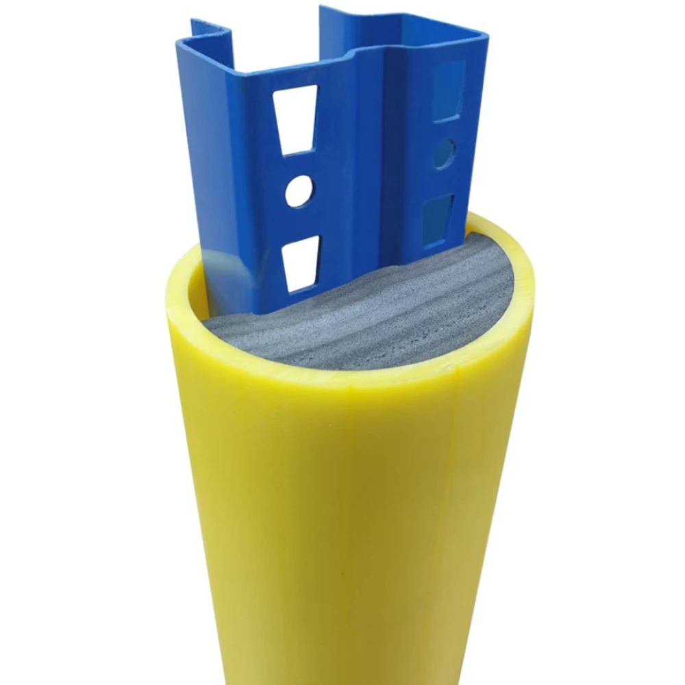 Демпфер для защиты стоек стеллажей на складах и в торговых помещениях. Представляет собой ударопрочный пластиковый корпус полость которого заполнена пеной с закрытой ячеистой структурой. Пена гасит и рассеивает кинетическую энергию удара и как следствие значительно уменьшает риск повреждения стойки стеллажа. Сопротивляется динамической нагрузке до 2,5 т. на скорости 5 км/ч и ударной до 370 Дж. Рассчитан для стоек 80-100 мм.