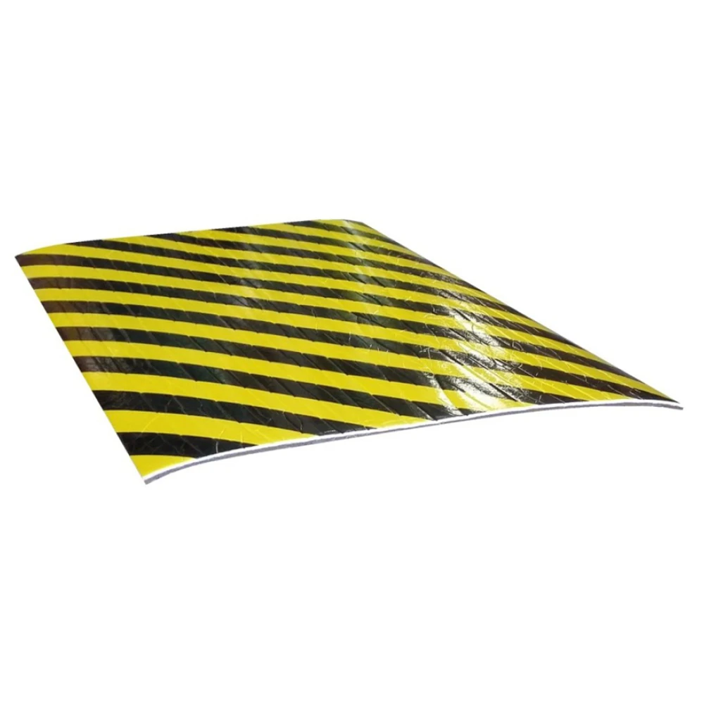 Вспененный полиэтилен с клеевым слоем, ламинированный сигнальной плёнкой.