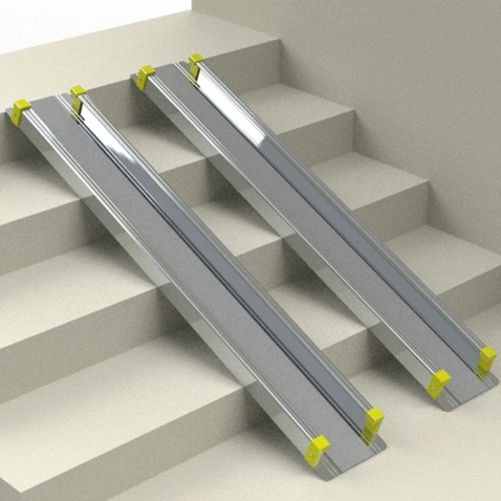 Пандусы телескопические используют в случае отсутствия возможности установки постоянной конструкции. Не требуют специального монтажа.