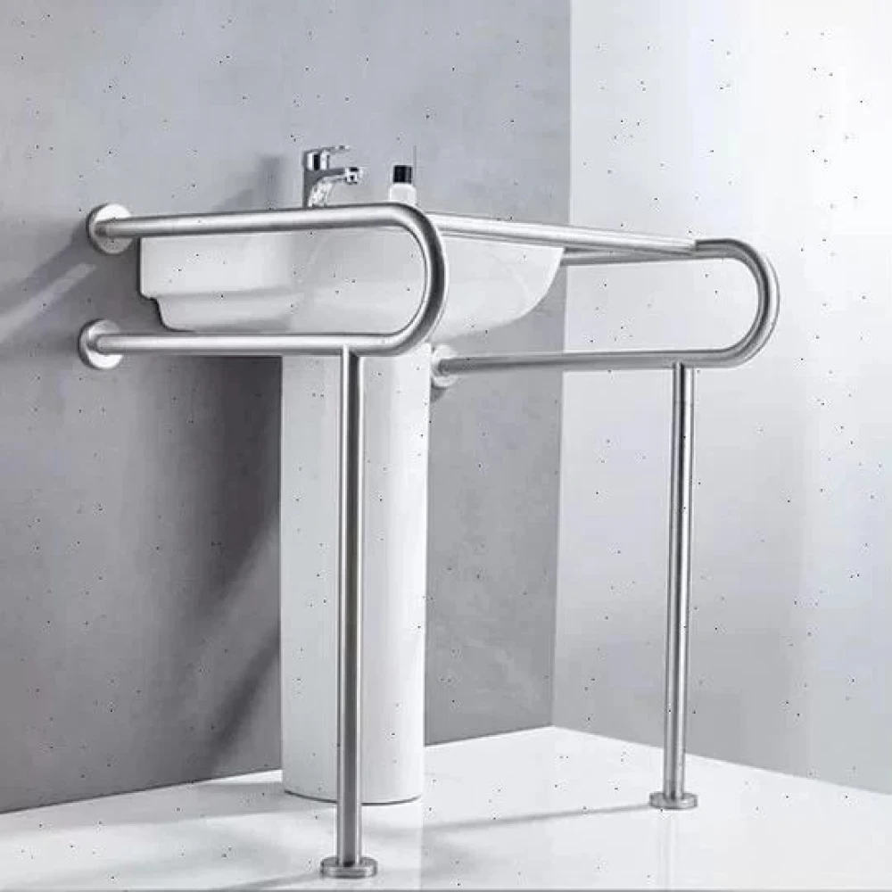 Поручень для раковины двойной крепление стена/пол 800х820х860 мм, нерж.сталь AISI 304