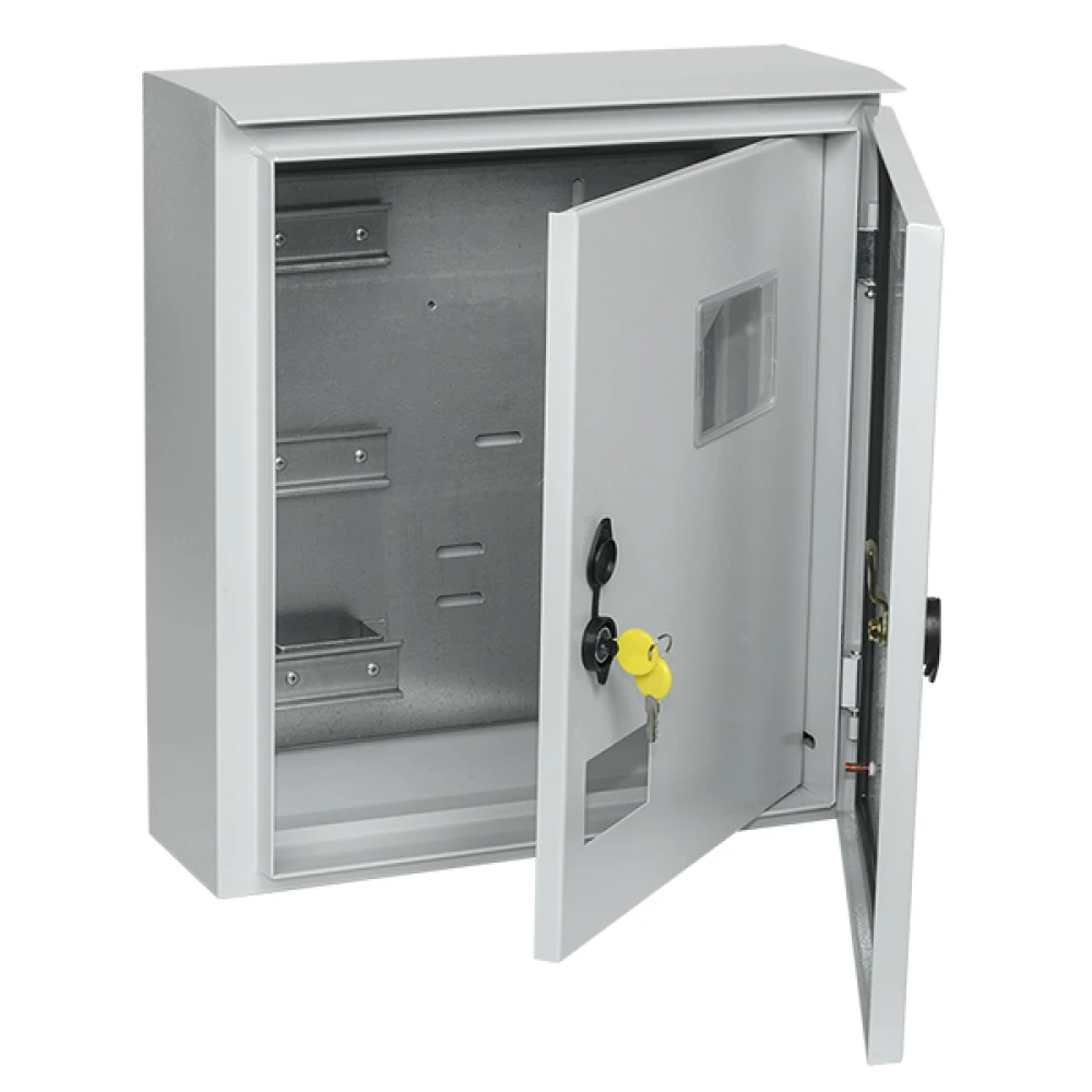 Щит навесной IEK ЩУ 3/1-1 12, трехфазный электр.счетчик с дверцей, замком, окном, с операт. панелью