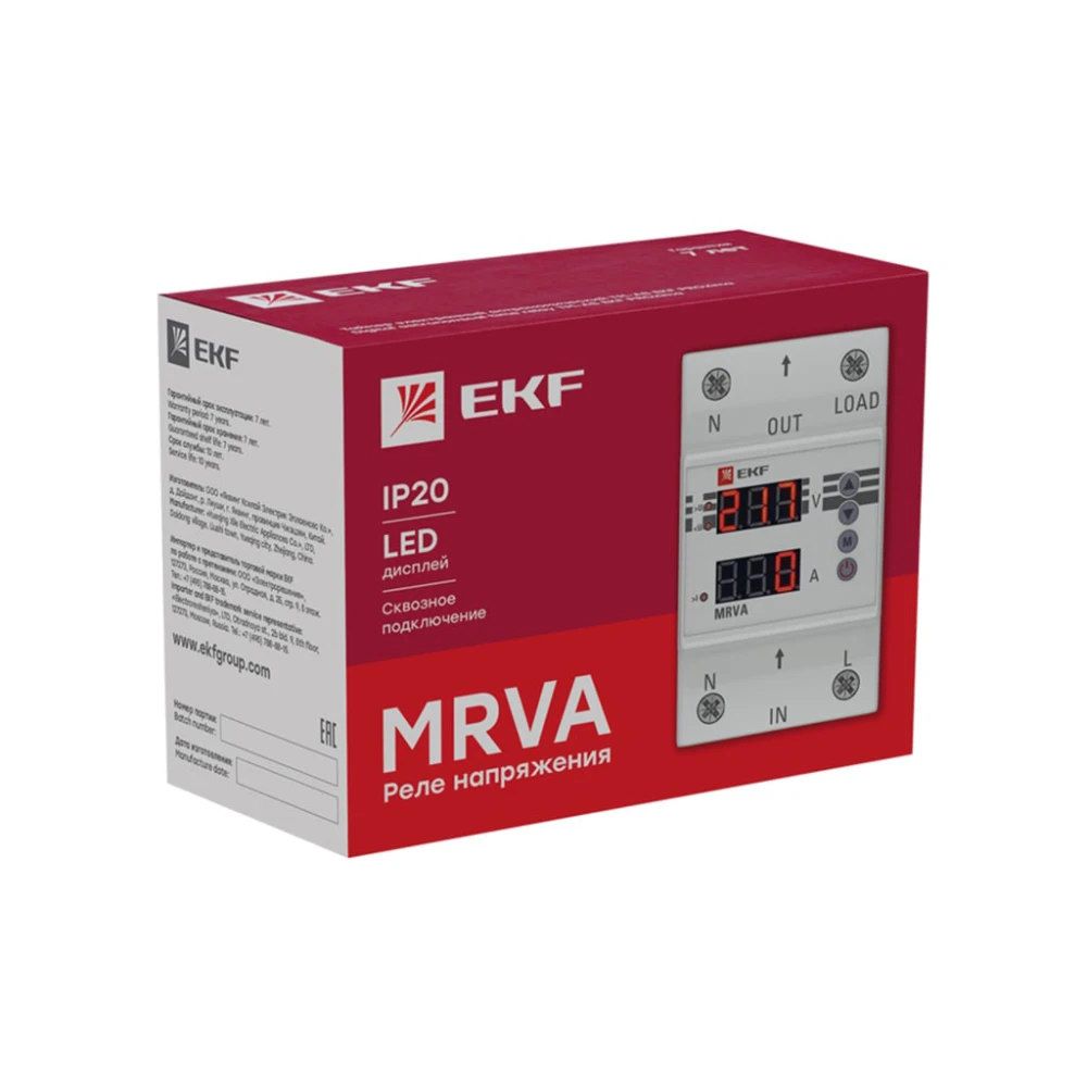 Реле напряжения и тока EKF PROxima являются микропроцессорным устройством и предназначено для постоянного контроля напряжения в однофазных и трехфазных сетях (MRVA-3) переменного тока, для защиты электроустановок от перепадов напряжения. Реле контролирует напряжение в сети в установленном диапазоне и при выходе напряжения за пределы диапазона отключает оборудование от сети электропитания с заданной выдержкой времени. Установка диапазона напряжения и времени срабатывания производится с помощью поворотных регуляторов (RV-5A, RV-32F) либо при помощи кнопок (MRV, MRVA, MRVs) расположенных на лицевой поверхности реле.