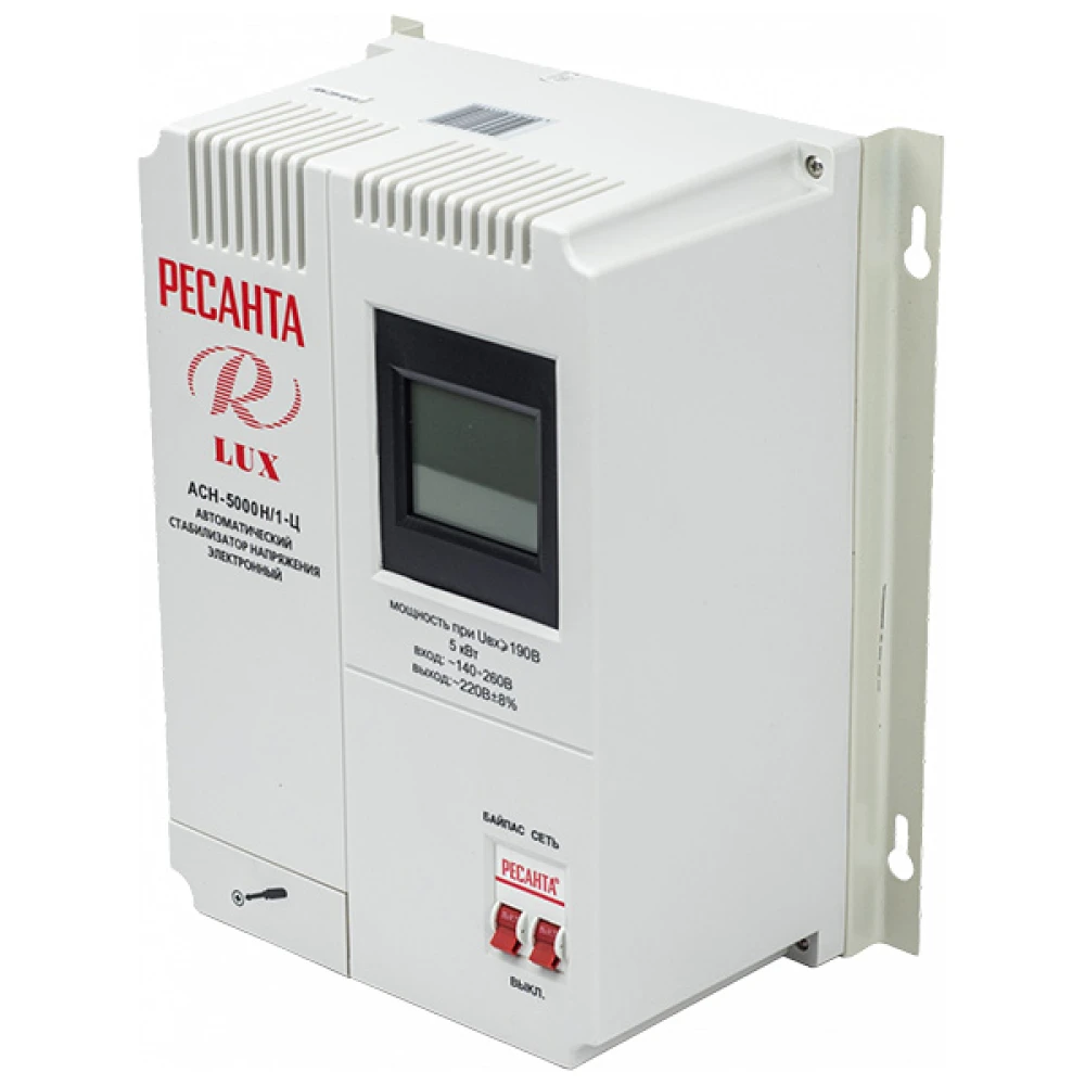 За счет своего принципа работы такой стабилизатор позволяет моментально реагировать даже на самые значительные и частые изменения напряжения в сети и предотвратить выход оборудования из строя. Номинальная мощность при входящем напряжении 190В составляет 5000Вт. Количество фаз = 1.Системы защиты: