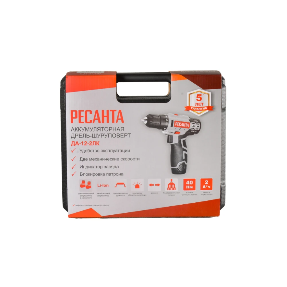 Дрель-шуруповерт аккумуляторная ДА-12-2ЛК Ресанта