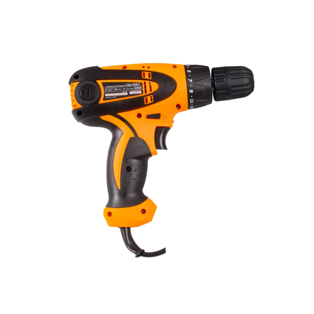Сетевой шуруповерт ВИХРЬ СШ-550/1 - функциональный электроинструмент с регулируемым крутящим моментом, предназначен для закручивания и откручивания шурупов, саморезов, винтов, дюбелей и других видов крепежных изделий, а также для сверления отверстий в различных материалах в быту и промышленности. Работает от электросети 220-230В. Данный шуруповерт отличается от модели СШ-550/2 тем, что имеет только одну скорость, меньше частота вращения (0-800 оборотов/мин.) и максимальный вращающий момент 20 Нм. Функции подсветки нет. Вместе с тем он значительно дешевле и идеально подойдет тем, кому шуруповерт редко нужен.