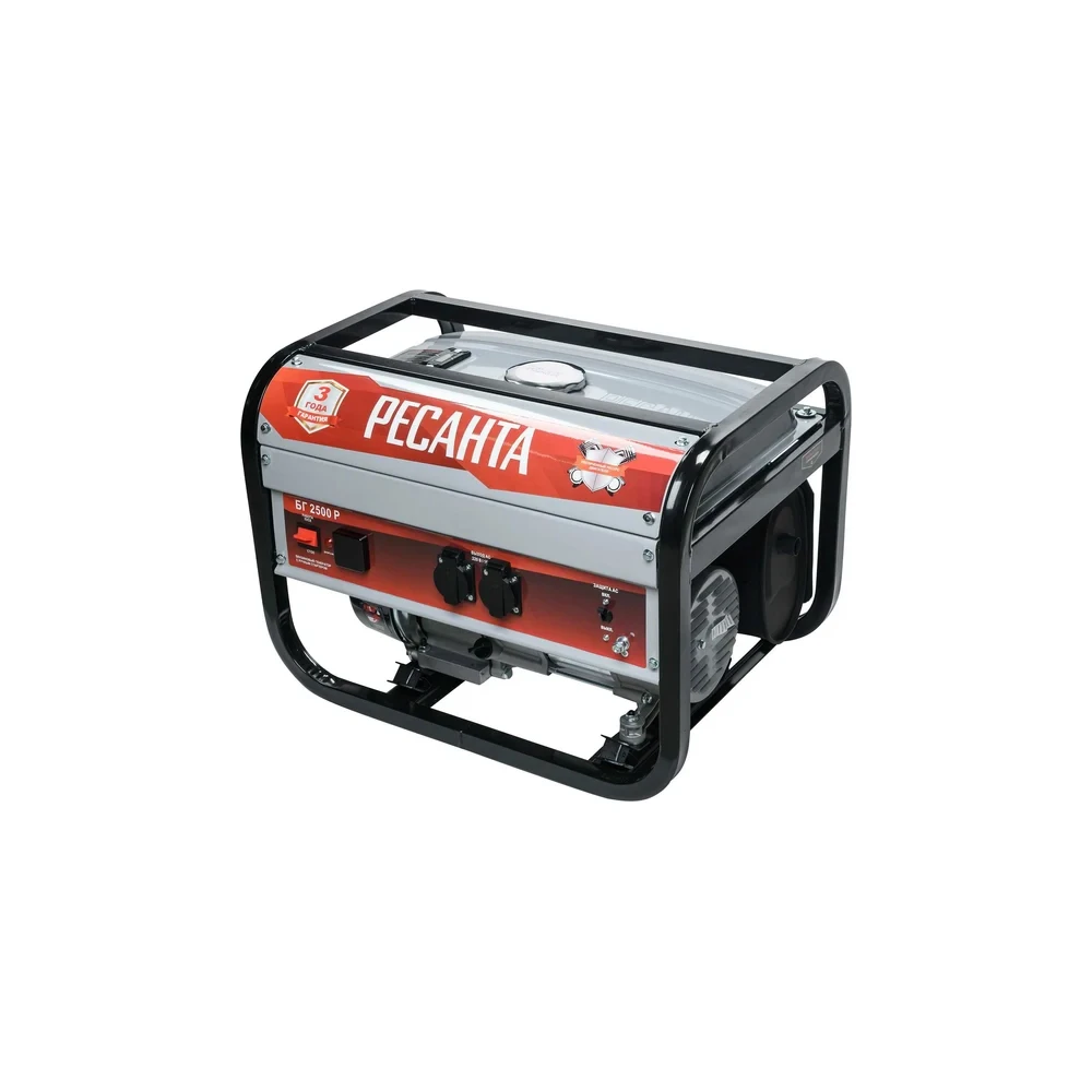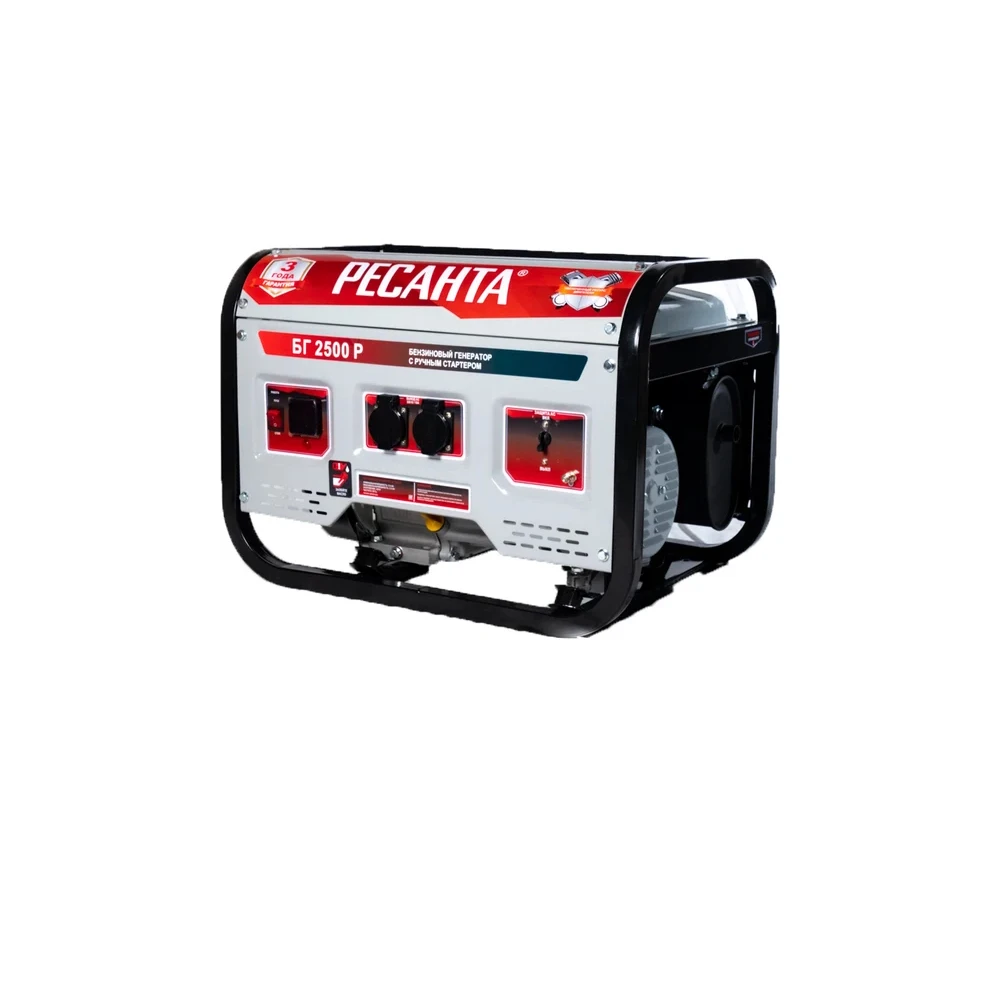 Ресанта БГ 2500Р – это электрический генератор, который работает на бензине. Предназначен электрогенератор в качестве основного или дополнительного источника тока. В качестве силового агрегата используется четырехтактный агрегат карбюраторного типа, работающий на неэтилированном бензине АИ-92.