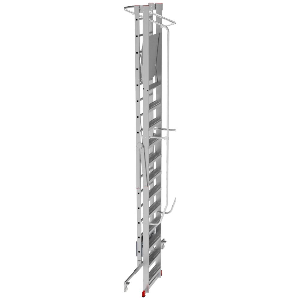 Широкая усиленная телескопическая опорная траверса стабилизирует лестницу (в комплекте 1×10–1×12).