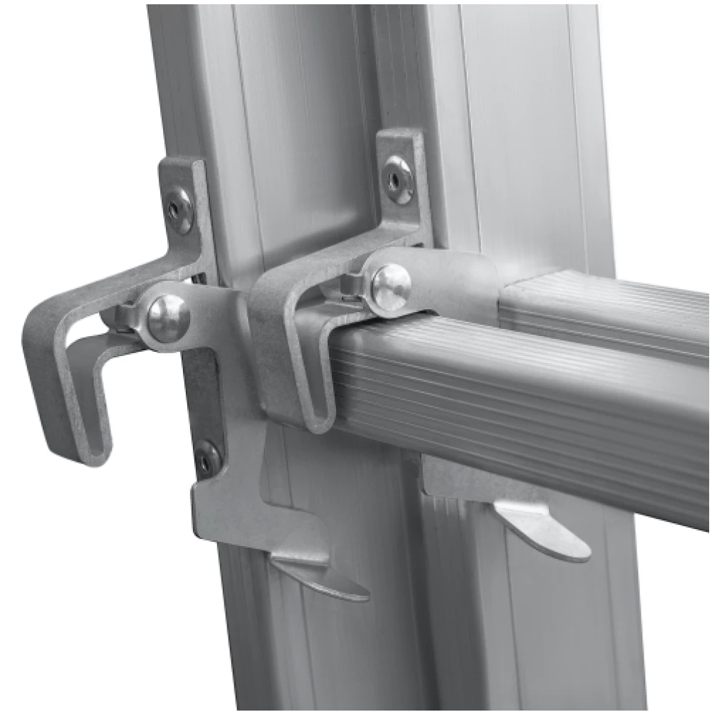 Алюминиевая стяжка в положении «Стремянка» создает жёсткую конструкцию и фиксирует рабочее положение.