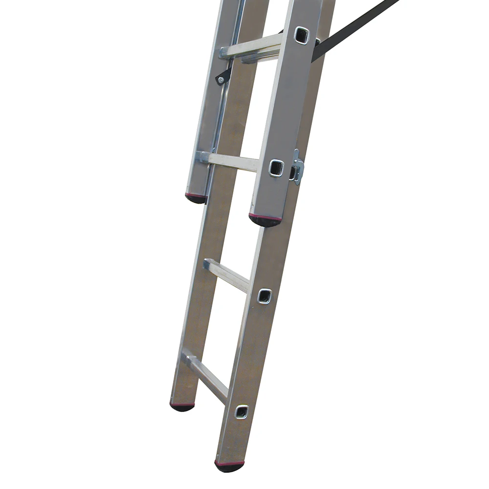 - Устойчивые к атмосферным воздействиям ремни препятствуют нежелательному раздвижению лестниц в рабочем положении