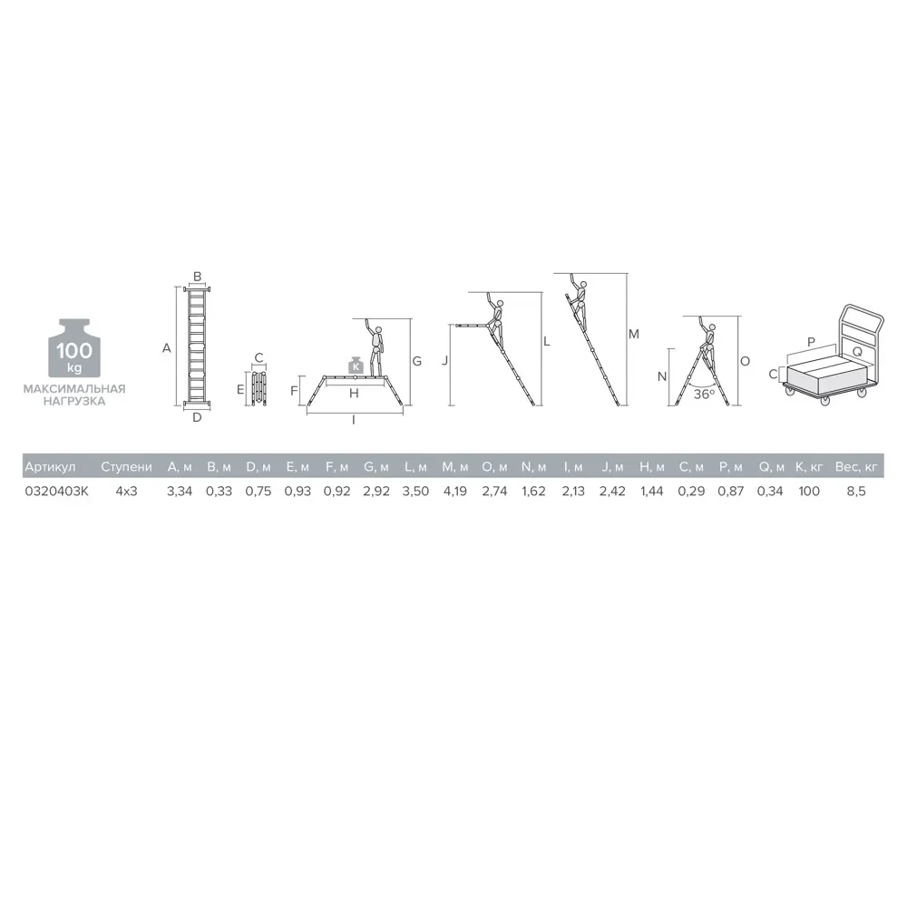 Технические характеристики Лестница-трансформер Новая Высота NV 0320 алюминиевая, 4х3 перекл, ширина 330 мм