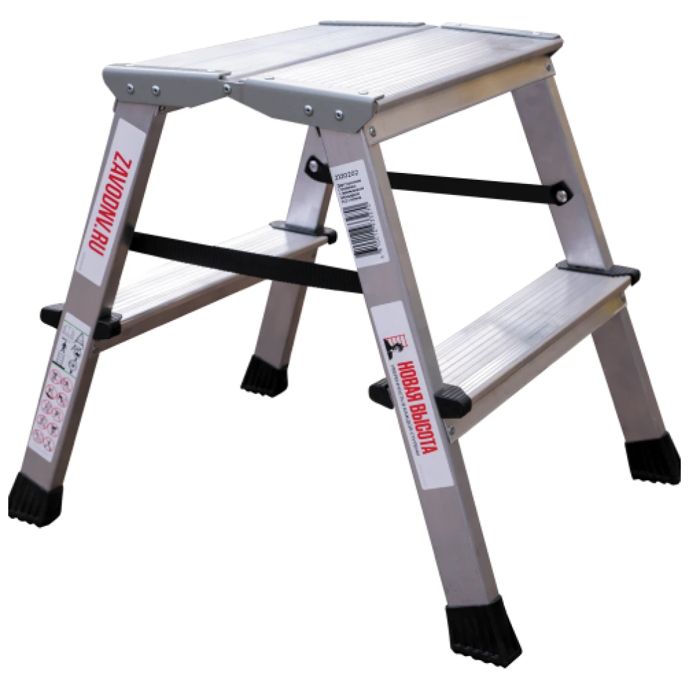 Стремянка алюминиевая двухсторонняя Новая Высота NV 2120, 2х2 ступени 80 мм, площадка 350х260 мм
