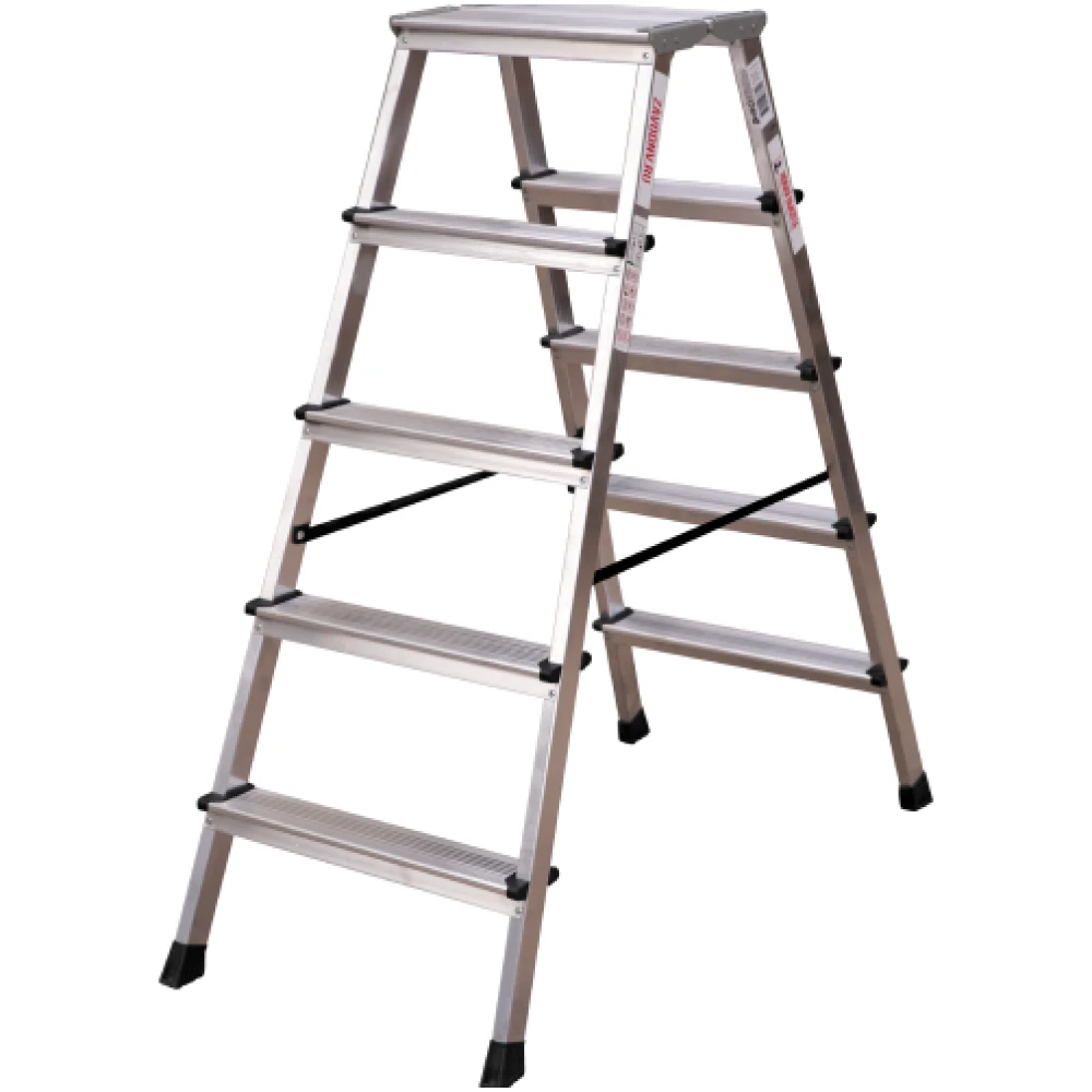 Стремянка алюминиевая двухсторонняя Новая Высота NV 2120, 2х5 ступеней 80 мм, площадка 350х260 мм