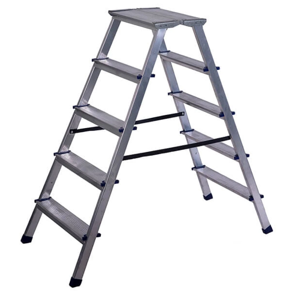 Стремянка алюминиевая двухсторонняя с мини-платформой 5 ступеней STAIRS
