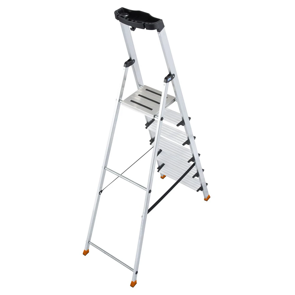 - Односторонняя алюминиевая стремянка c высокой дугой безопасности, с большой противоскользящей площадкой