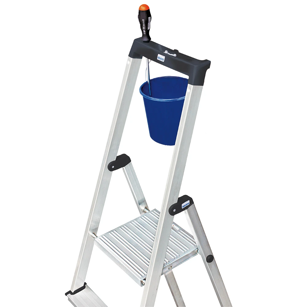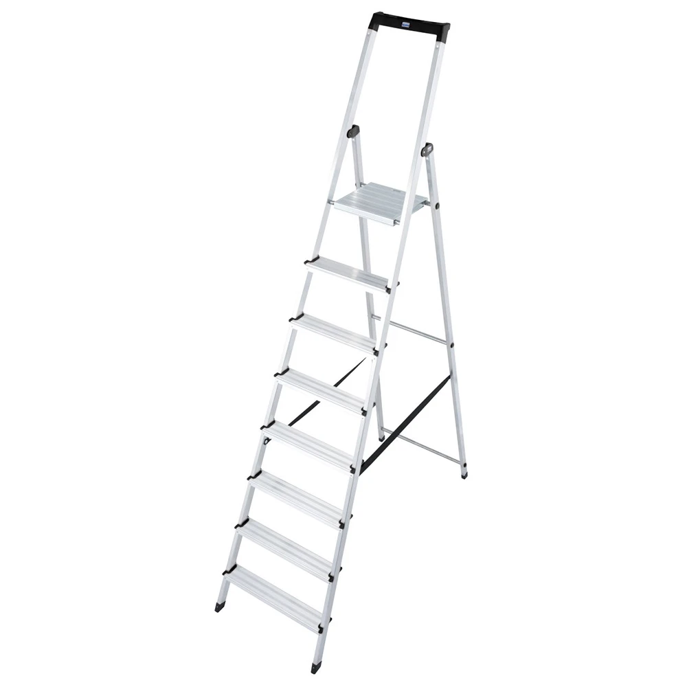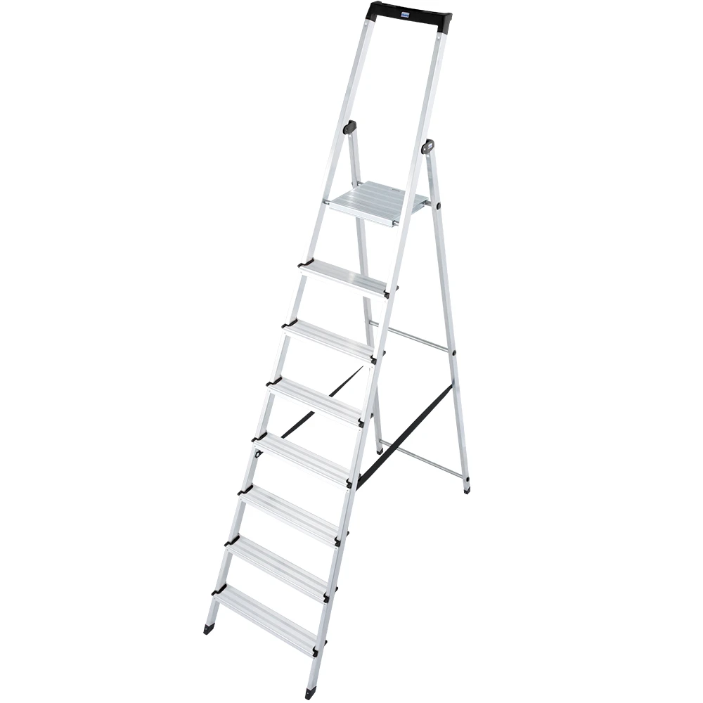- Односторонняя алюминиевая стремянка c высокой дугой безопасности, с большой противоскользящей площадкой