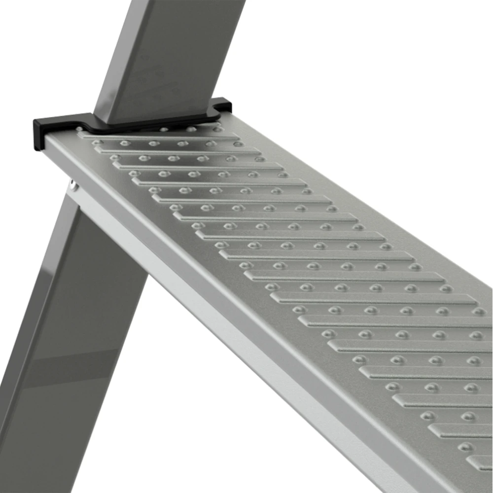 Закруглённые безопасные края ступеней и площадки смягчают контакт с голенью, предотвращают травмы.