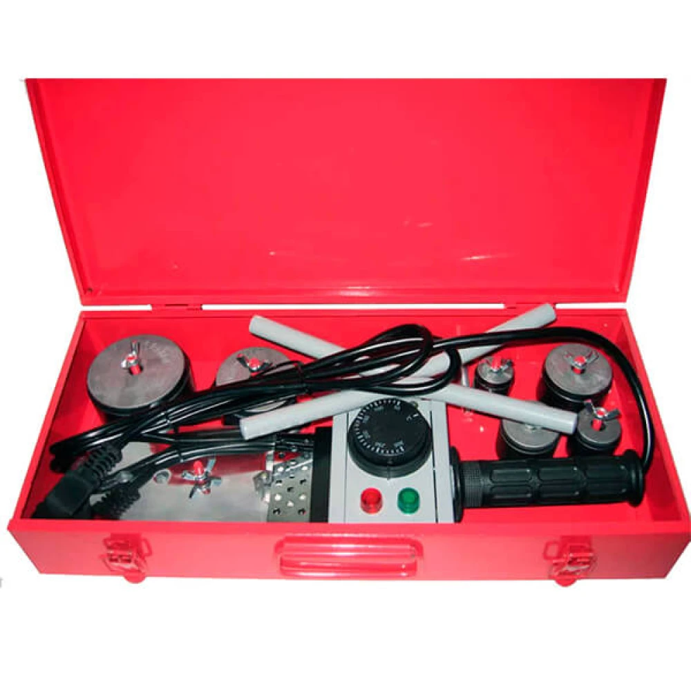 Прибор используется для сварки труб различного диаметра из большинства полимерных материалов. Он надежно соединяет конструкции без протечек в месте шва. Сварка выполняется в месте стыка и не требует применения дополнительных деталей. Насадки имеют антипригарное тефлоновое покрытие, обеспечивающее долгий срок службы. Аппарат оснащен индикатором подключения к сети и контроля температуры. Также предусмотрена подставка, на которую можно установить прибор при перерывах в работе. Есть удобный и вместительный металлический кейс.
