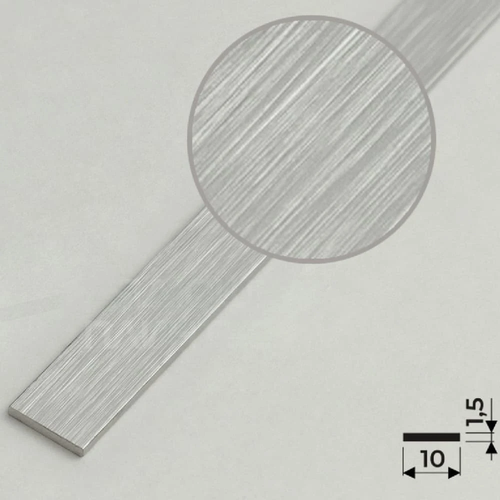 Алюминиевая полоса 10х1,5мм, 2,7м, браш серебро/мат