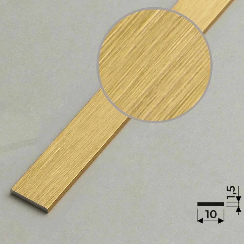 Алюминиевая полоса 10х1,5мм, 2,7м, браш золото/глянец