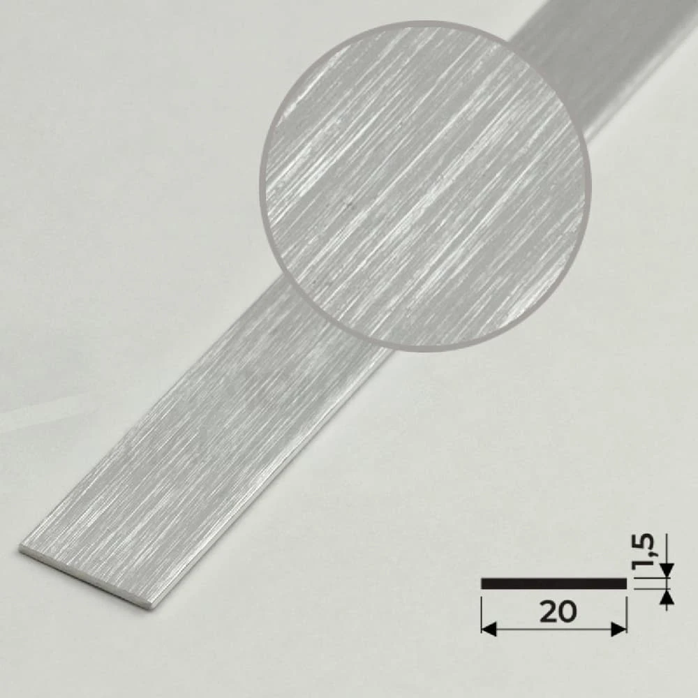 Алюминиевая полоса 20х1,5мм, 2,7м, браш серебро/глянец