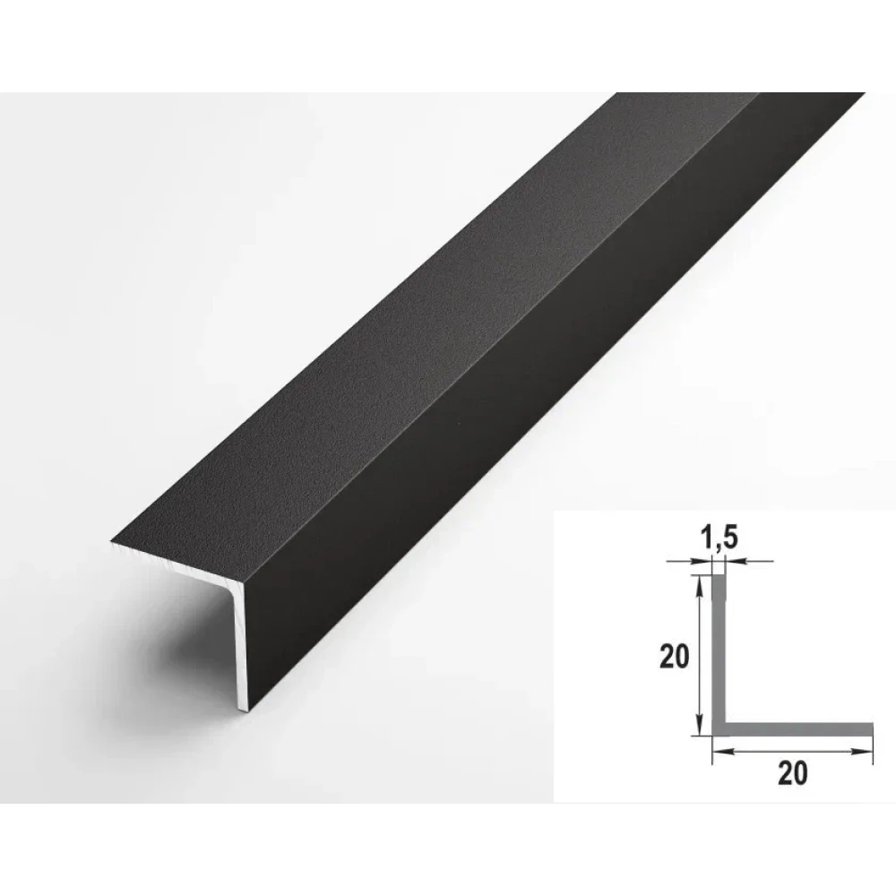 Алюминиевый декоративный уголок УП 06-27.2700.515, 20х20, 2700мм, черный