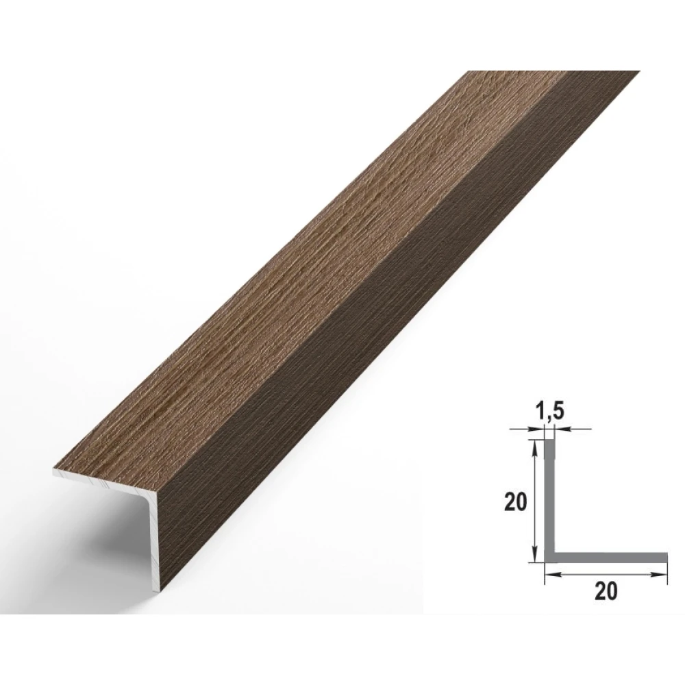 Алюминиевый декоративный уголок УП 06-27.2700.54061, 20х20, 2700мм, дуб мокко