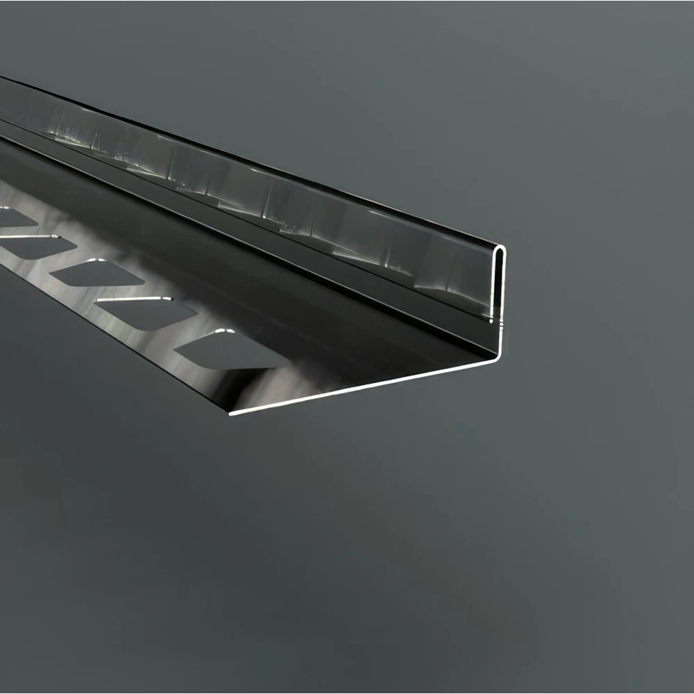 Профиль используется, как декоративный, закладной элемент при формировании завершения или начала раскладки для кафельной плитки, керамогранита, стеновых панелей, закладной элемент напольных, стеновых или потолочных покрытий.