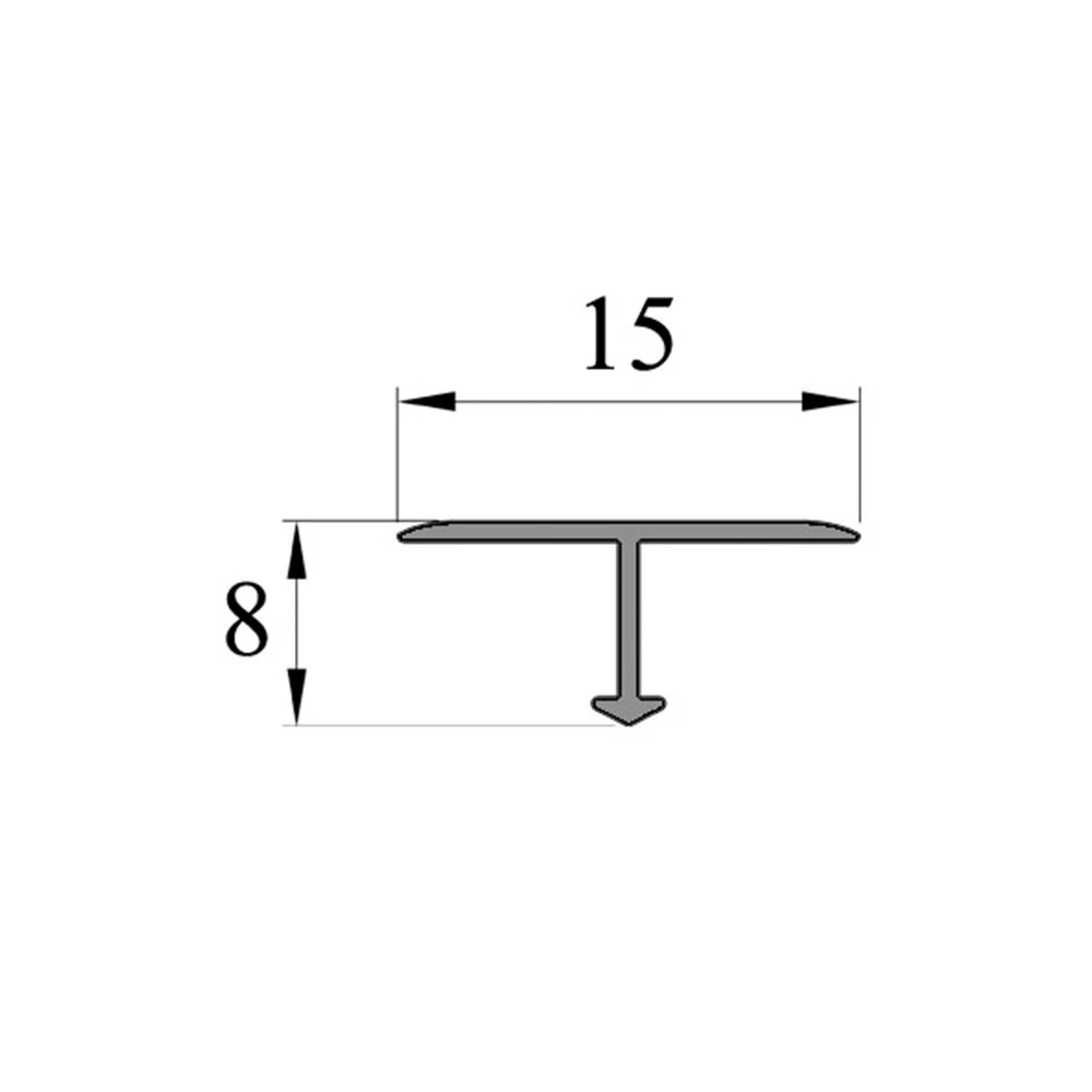 Алюминиевый T-образный профиль предназначен для облицовки и защиты соединений любых равноуровневых покрытий. Ширина декоративной части - 15 мм. Его можно применять в паре с алюминиевой базой для Т-образных профилей, что позволяет применение профиля в широком диапазоне толщин покрытий - от 5 до 20 мм.