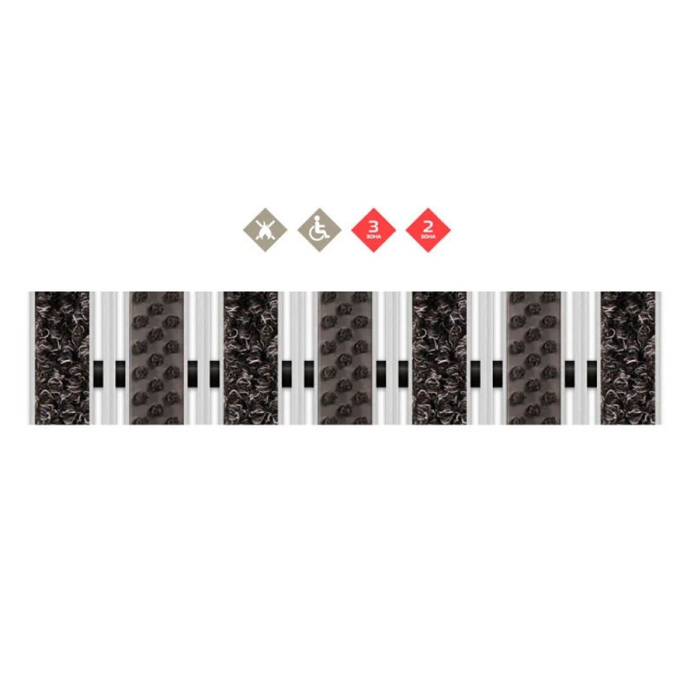 Технические характеристики Алюминиевая грязезащитная решетка СТРОНГ ворс+щетка+скребок