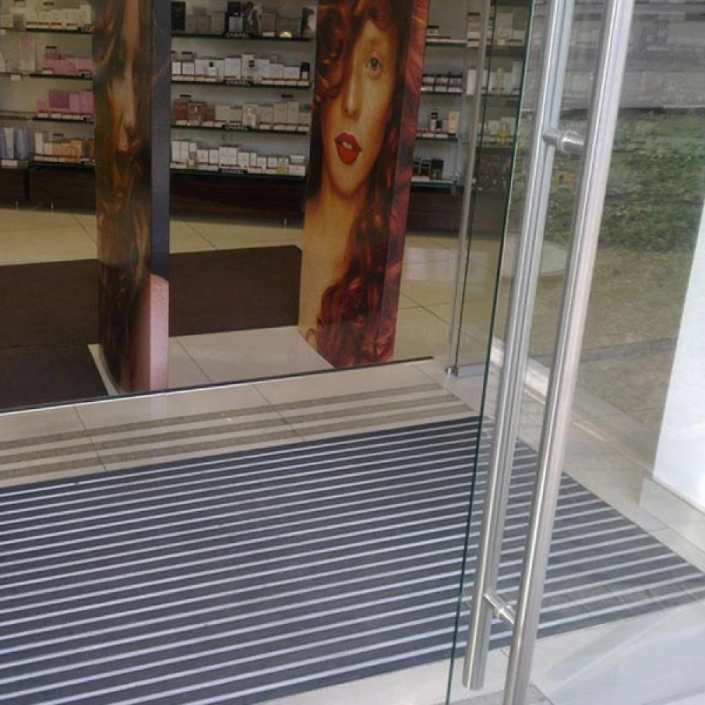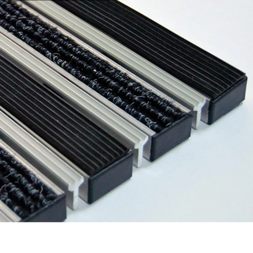 Чередование чистящих вставок из рифлёной резины, полипропиленового текстиля и алюминиевых скребков позволяет изделию задерживать не только грязь, но и влагу. Для предотвращения попадания “грязевого коктейля” вовнутрь края среза изделия закрыты торцевыми заглушками из термопластика.