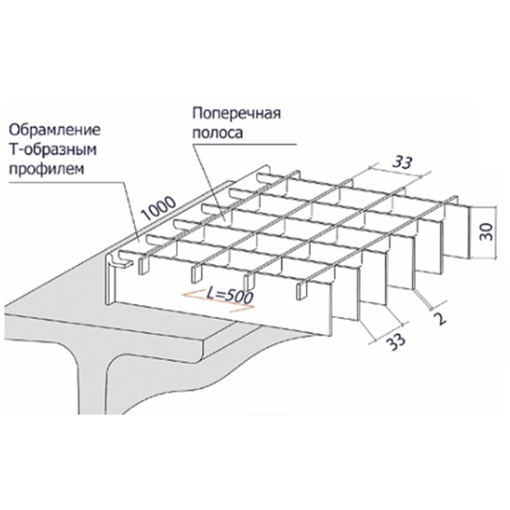Технические характеристики Стальная грязезащитная решетка из прессованного настила 33х33/30х2 Zn, 500х1000 мм