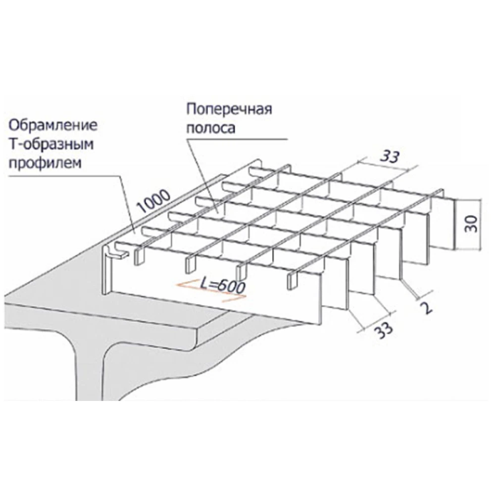 Технические характеристики Стальная грязезащитная решетка из прессованного настила 33х33/30х2 Zn, 600х1000 мм