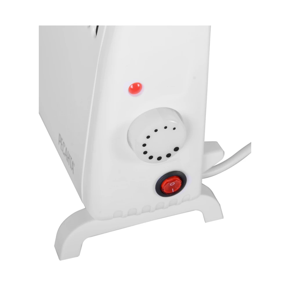 Электроконвектор работает без вентилятора, за счет конвекционного переноса тепла и естественной циркуляции. Холодный воздух через нижние заборные решетки поступает к игольчатому нагревателю, становится теплее, расширяется и поднимается вверх. При этом корпус прибора не греется выше комфортного уровня. Бесшумная работа и безопасность при случайном касании позволяют включать конвектор Ресанта ОК-500С в спальнях и детских. Класс защиты по паспорту IP20: обогреватель можно размещать в жилых и офисных помещениях с нормальной влажностью.