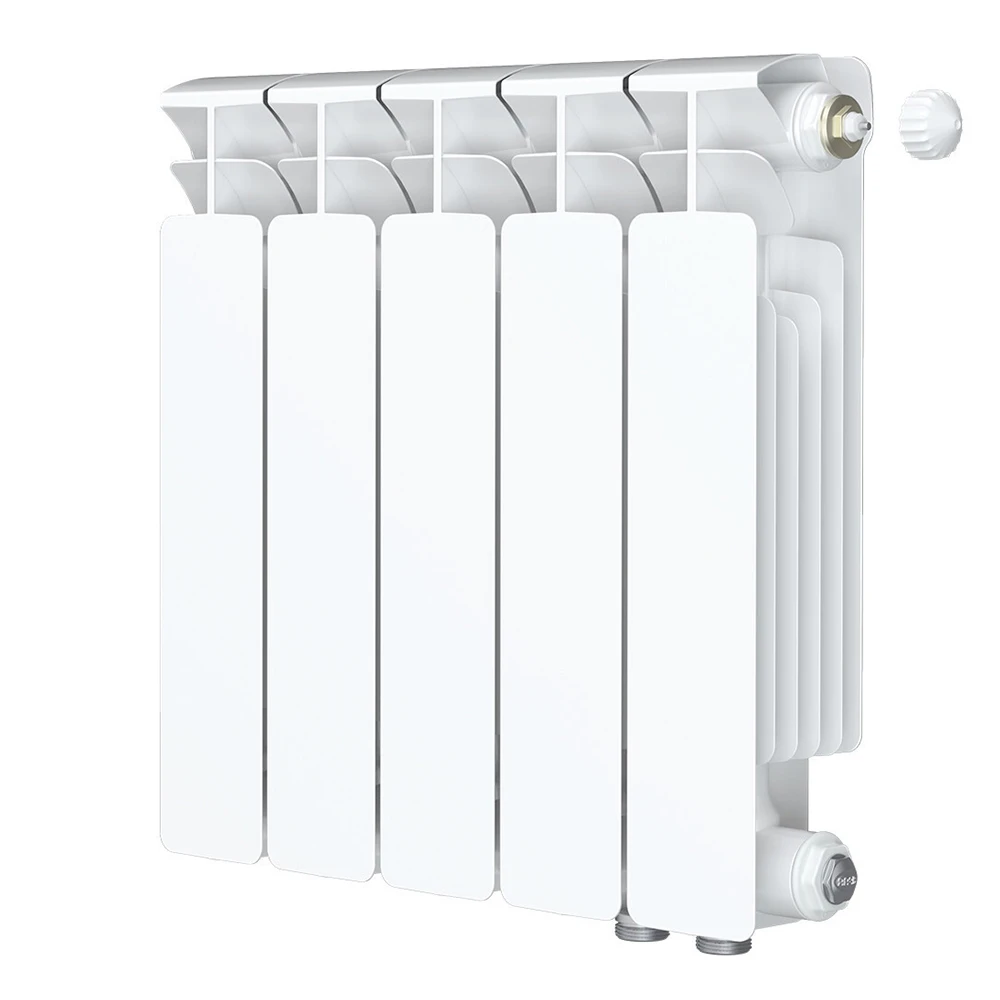 Высокую тепловую мощность радиаторов обеспечивает алюминий. Из него под давлением отливаются секции. Данный материал быстро реагирует на изменения температуры теплоносителя. Это позволяет регулировать температуру в каждой комнате с точностью до 1°C, но необходимо отдельно установить термоголовку.