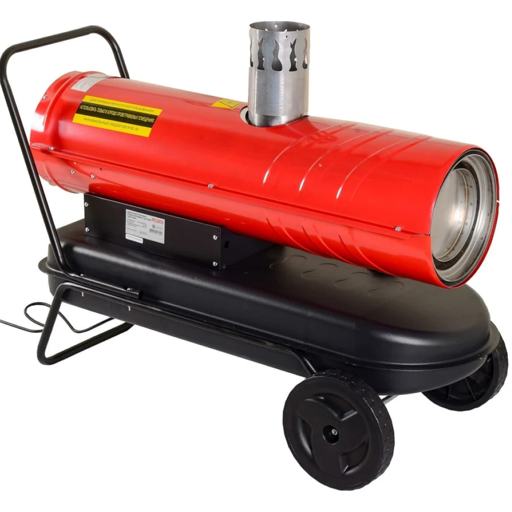 - Простота транспортировки. Колеса упрощают транспортировку дизельной тепловой пушки Ресанта ТДПН-30000.