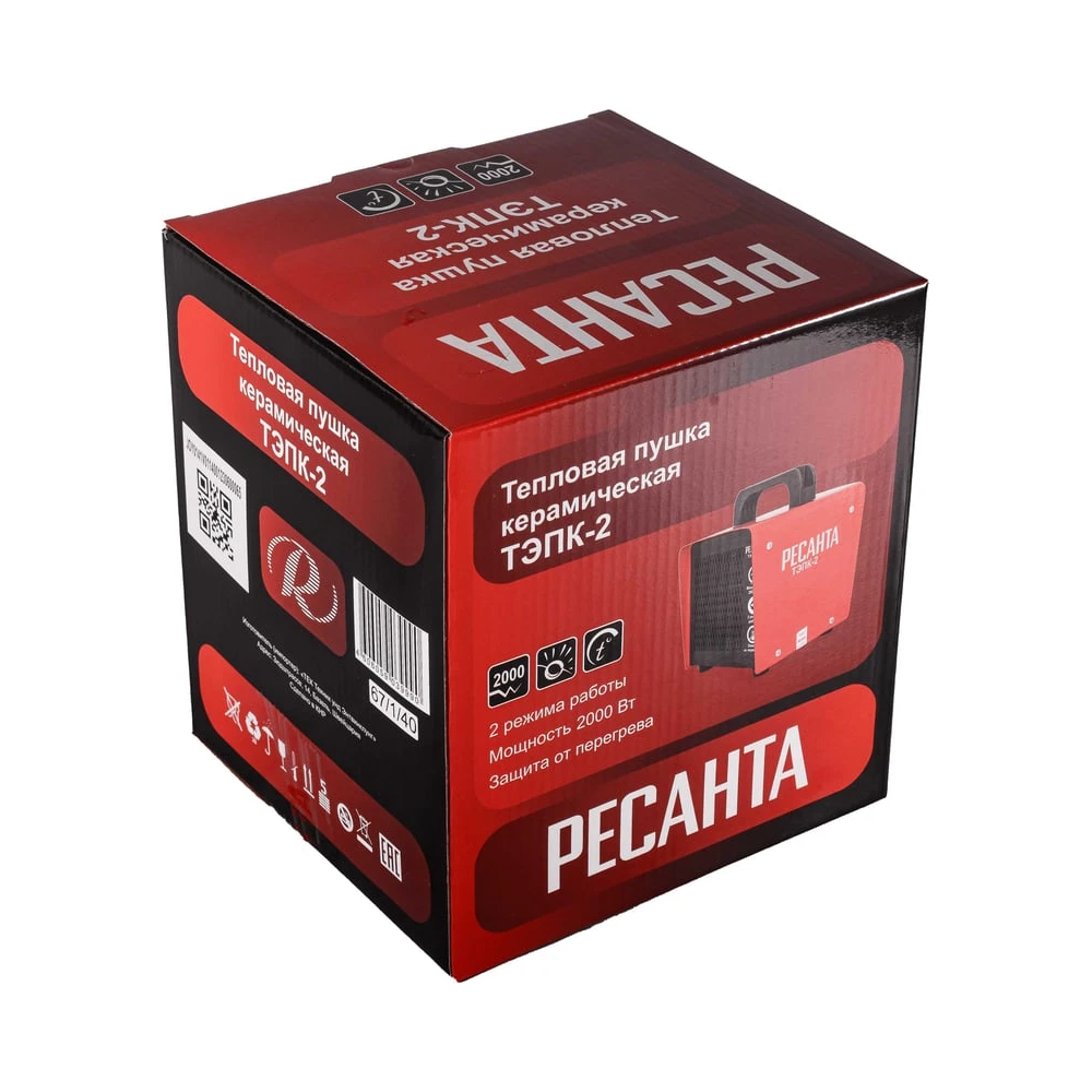 Технические характеристики Тепловая электрическая пушка ТЭПК-2 (керамический нагревательный элемент) квадратный корпус Ресанта