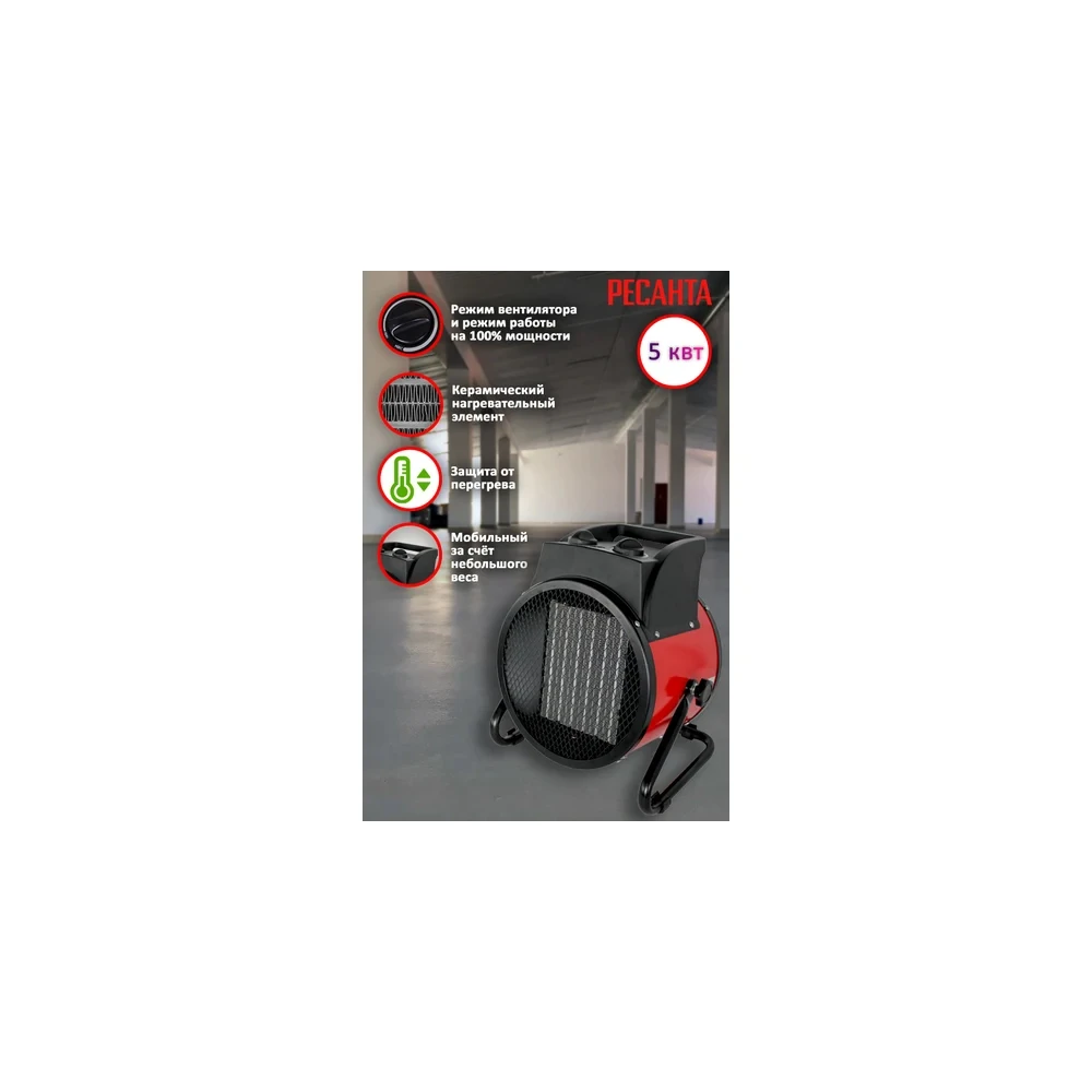 Тепловая электрическая пушка ТЭПК-5000K (керамический нагревательный элемент,круглая) Ресанта